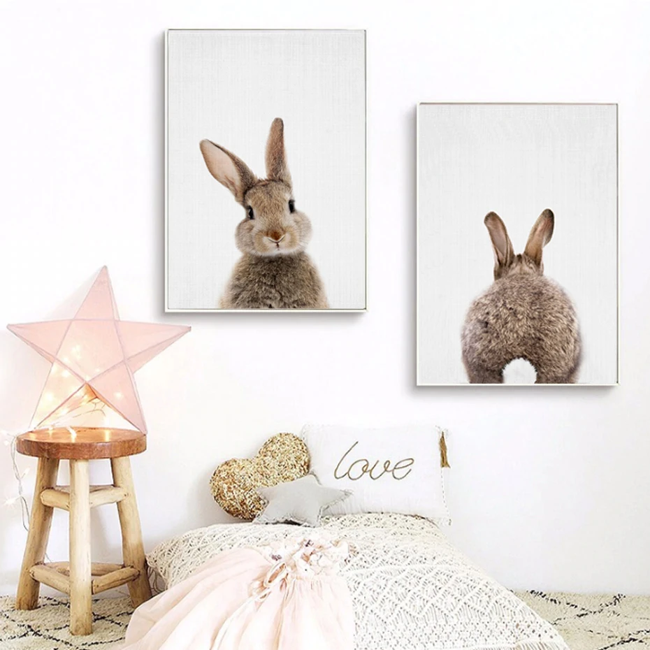 Кролик BunnyTail Лесной животных декор для детской комнаты цветок холст картина для девочек постер печать Настенная картина Детская комната Домашний декор
