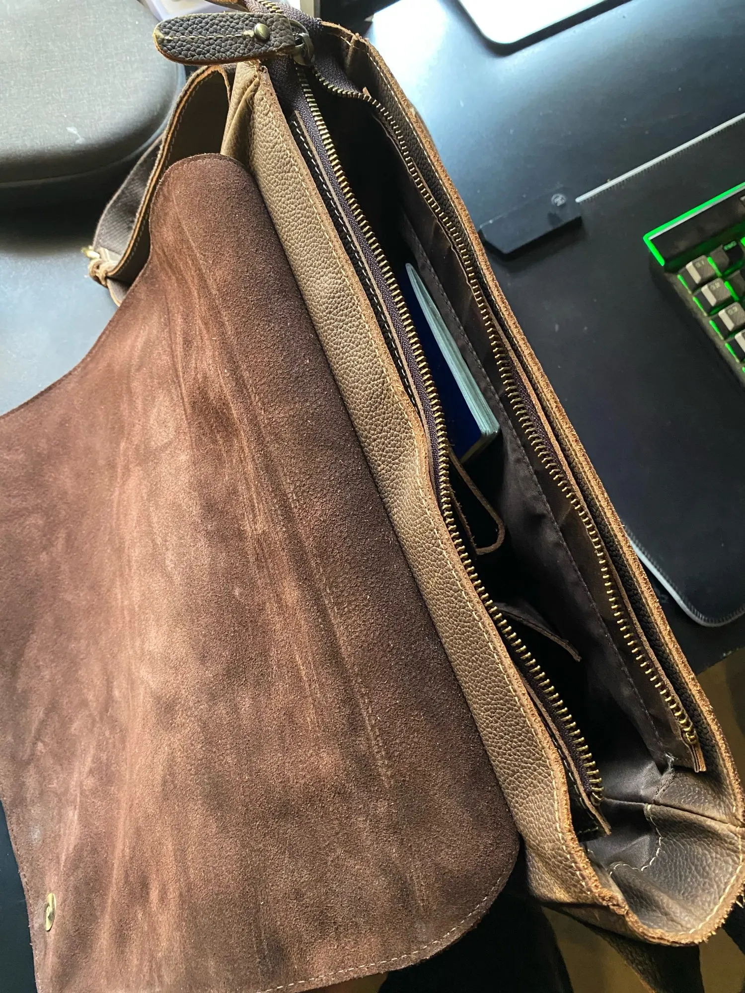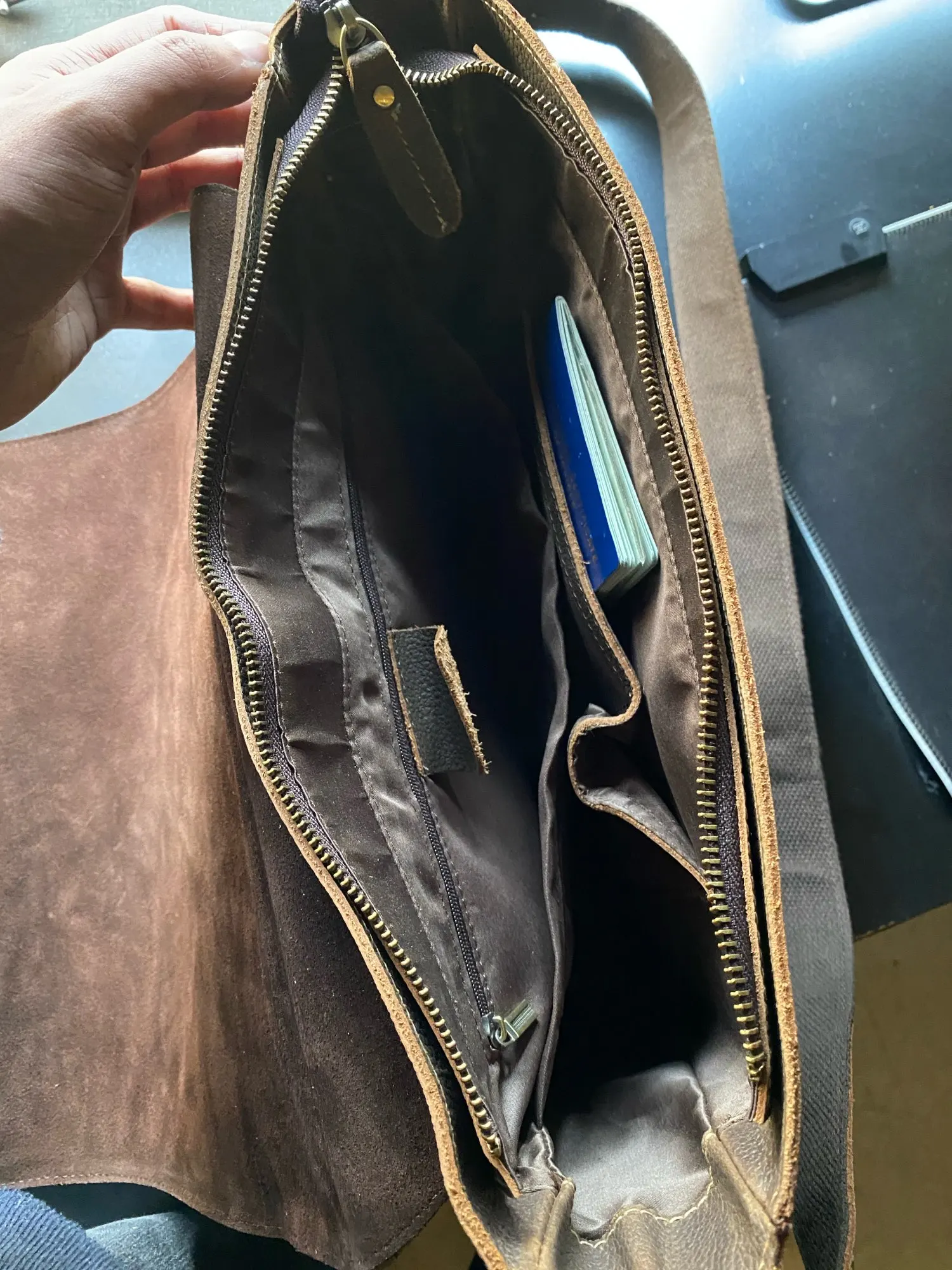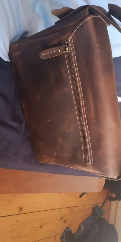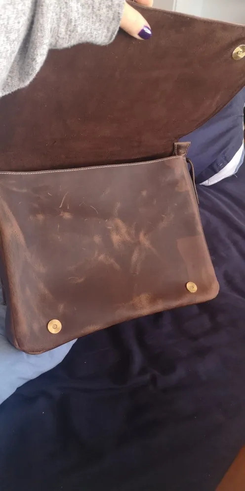 Сумка вместительная - папка с А4 помещается без проблем. Пахнет кожей.