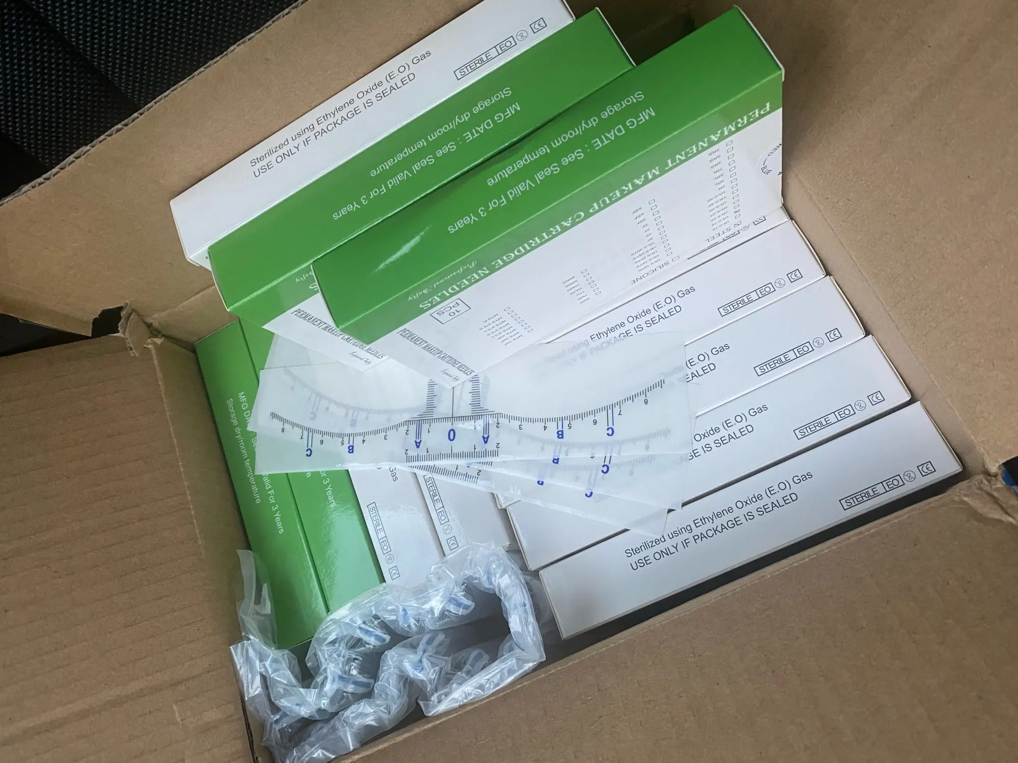 Иглы все целые. Пришли за 1 неделю в СПБ. Курьер принёс на дом. Покупаю не первый раз, очень ими довольна. В работе не подводят. Теперь они в плотном блистере. Это дополнительная защита при транспортировке. Раньше были в мягкой упаковке, как шприц. Спасибо продавцу за быструю доставку и хороший товар. Рекомендую