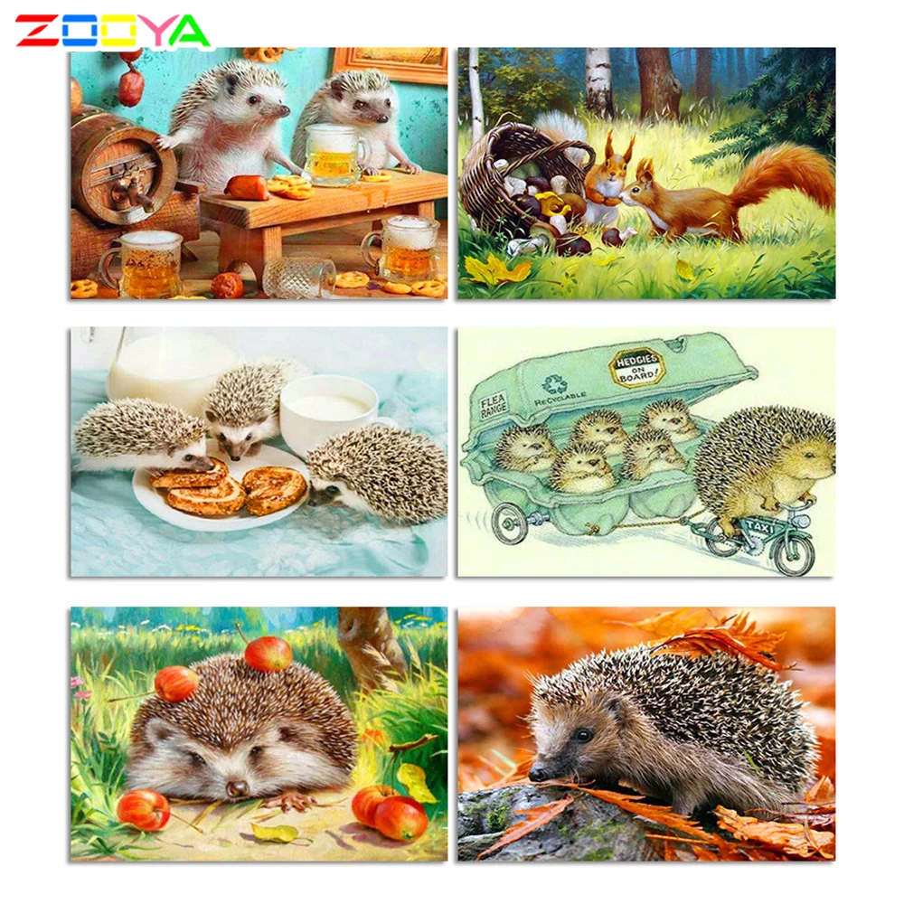 ZOOYA Алмазная вышивка сделай сам лес Ежик корзигриб алмазная живопись вышивка крестиком Круглая Мозаика Украшение CH023