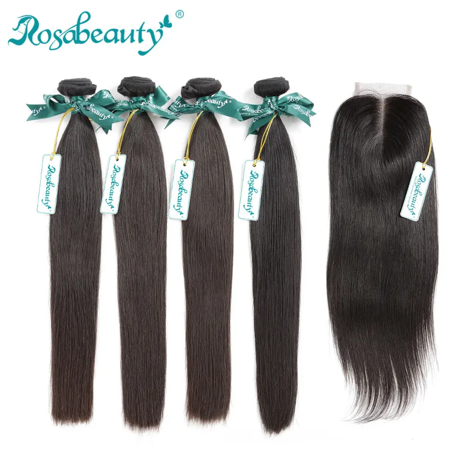 8A бразильские пучки прямых и волнистых волос с закрытием фронтальные 100% человеческие волосы пучки и кружева закрытие Remy волосы для наращивания