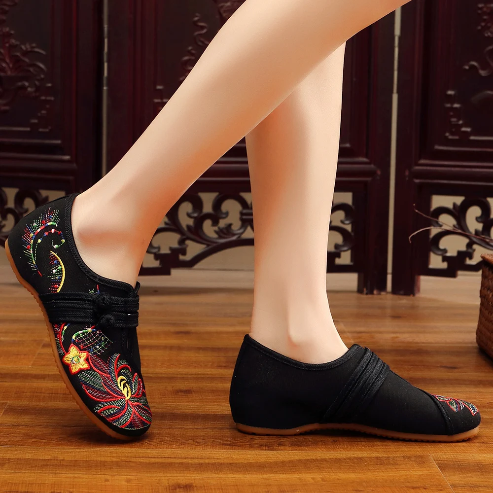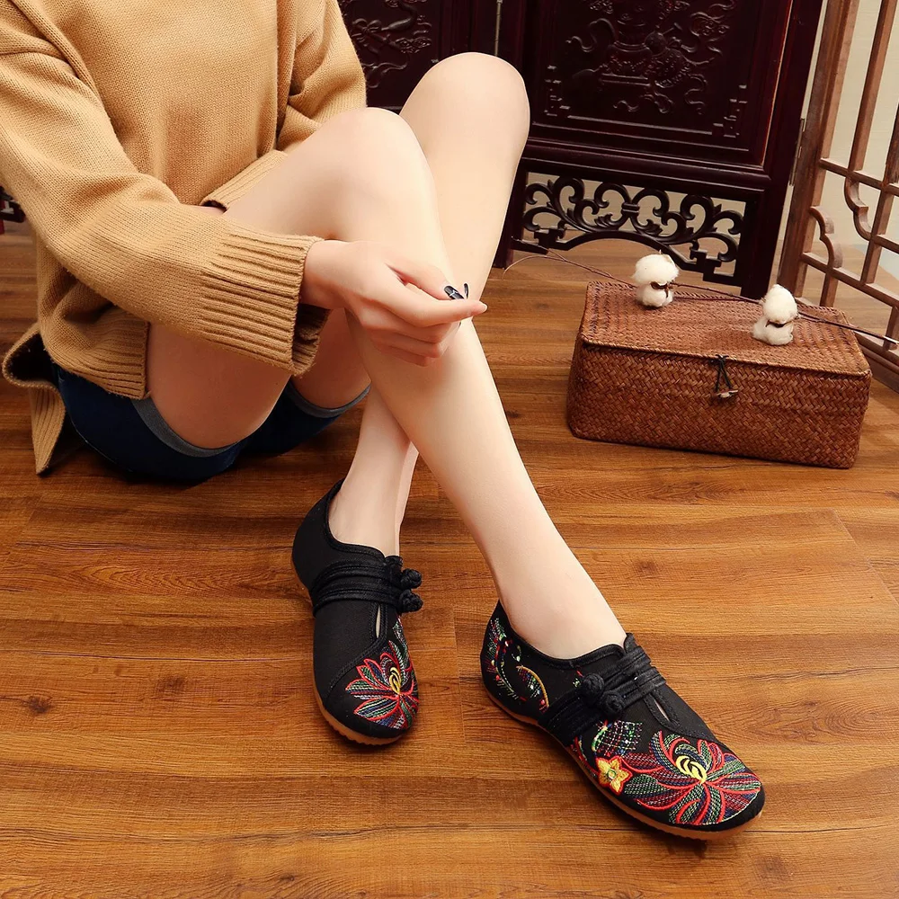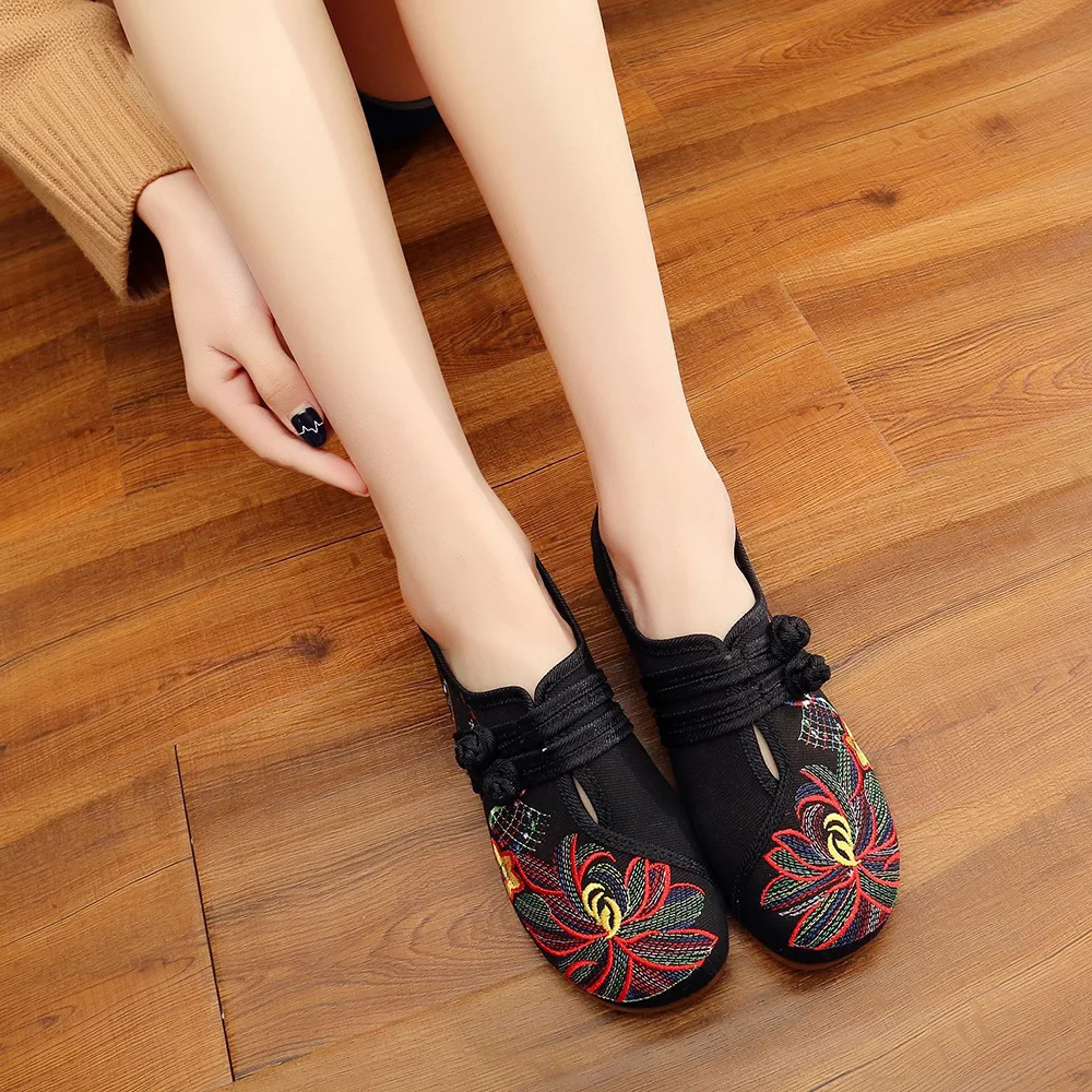 Veowalkженские хлопковые туфли на плоской подошве с цветочной вышивкой в стиле старого Пекина; Винтажные Повседневные Дышащие туфли для невесты с двойной пряжкой