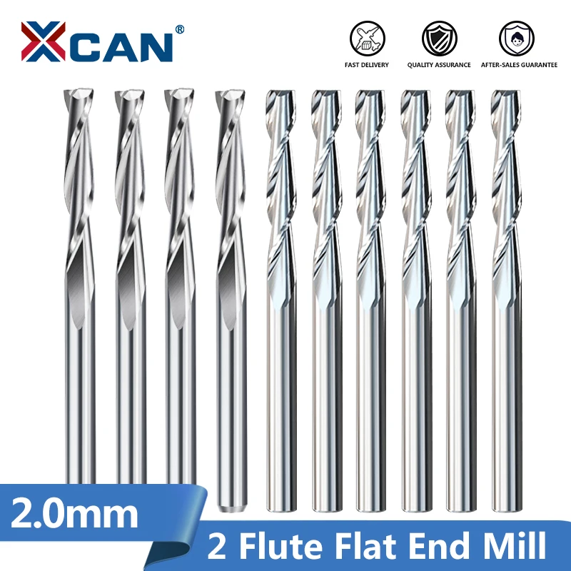 XCAN 10 шт. диаметр 2,0 мм 2 канавки с плоским концом 3,175 мм хвостовик спиральный фрезерный станок с ЧПУ микро торцевые фрезы карбида фрезы
