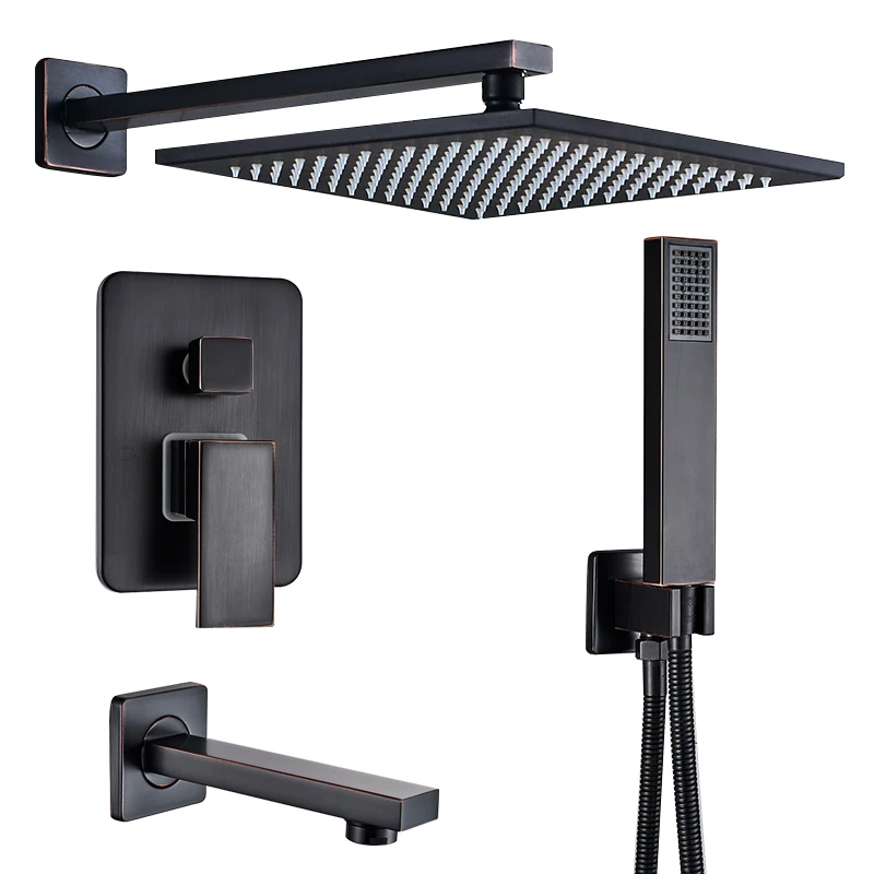 Quyanre RU доставка, черный скрытый смеситель для душа, набор 12 ", латунная насадка для душа с одной ручкой, смеситель для ванной комнаты, Душ