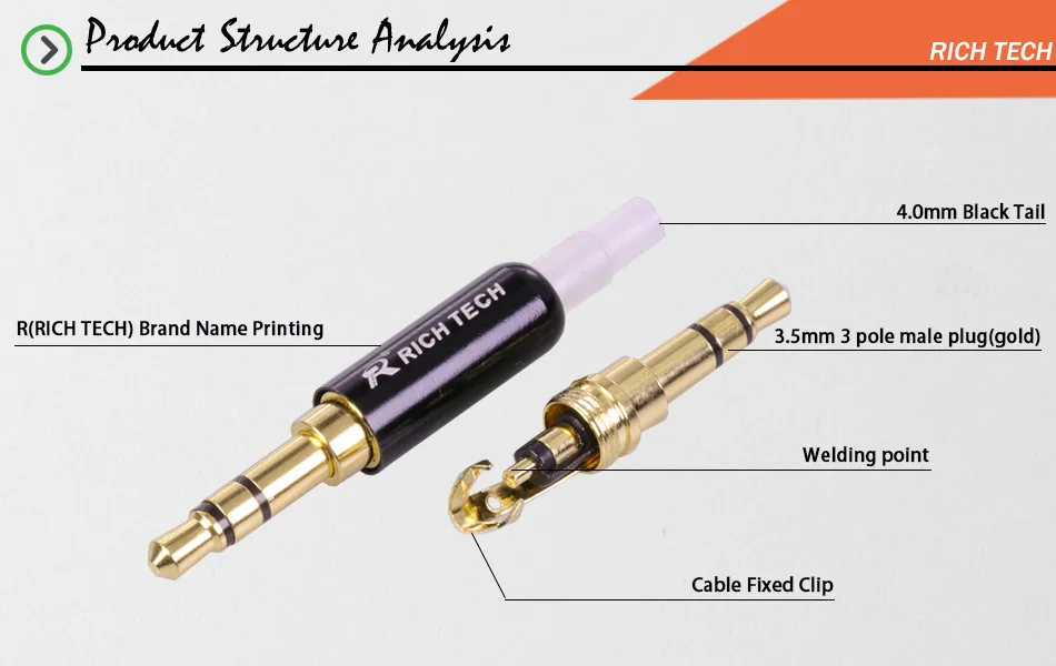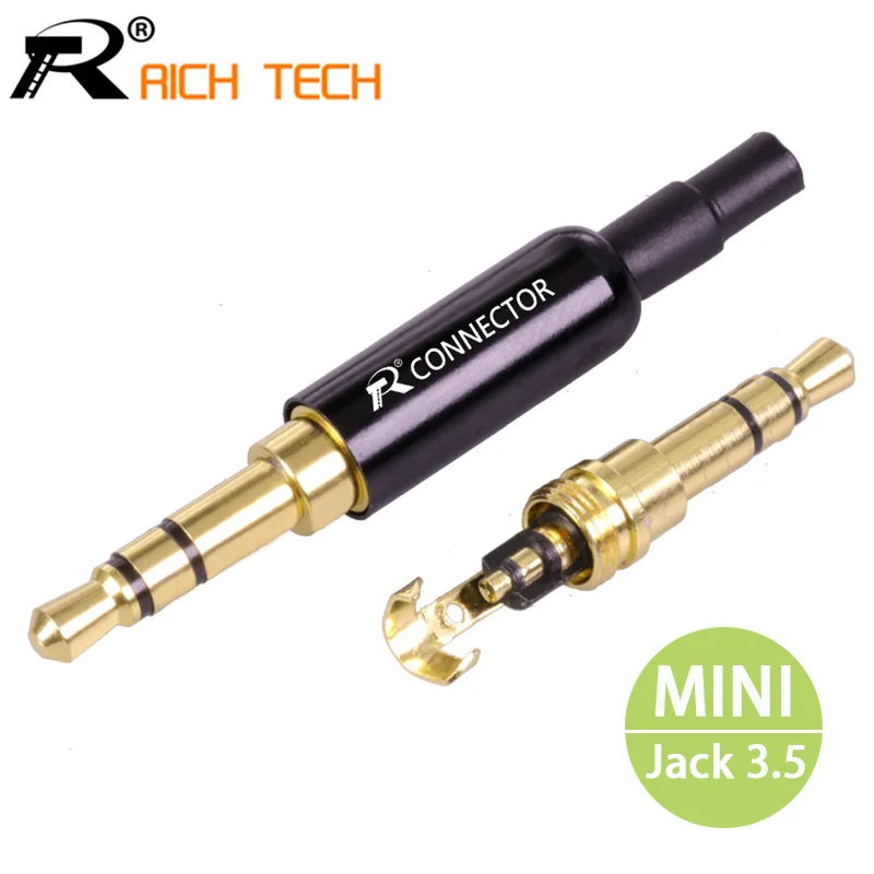 Мини-джек 3,5 мм, алюминиевый 3-полюсный позолоченный адаптер для стереонаушников с хвостовым штекерным зажимом, зажим для кабеля, сделай сам, стереогарнитура, 1 шт.