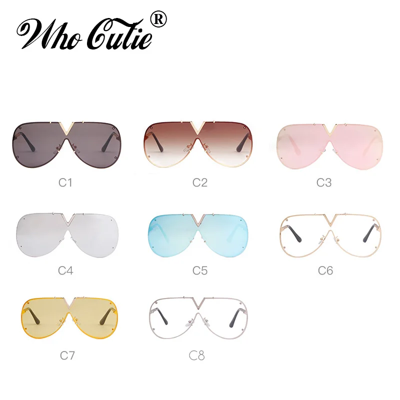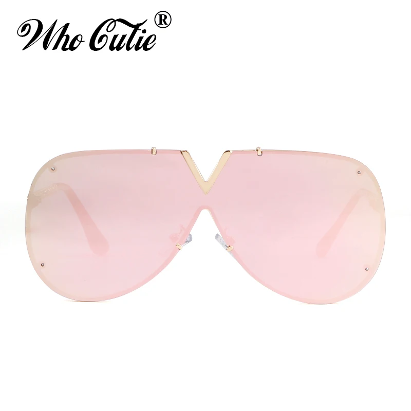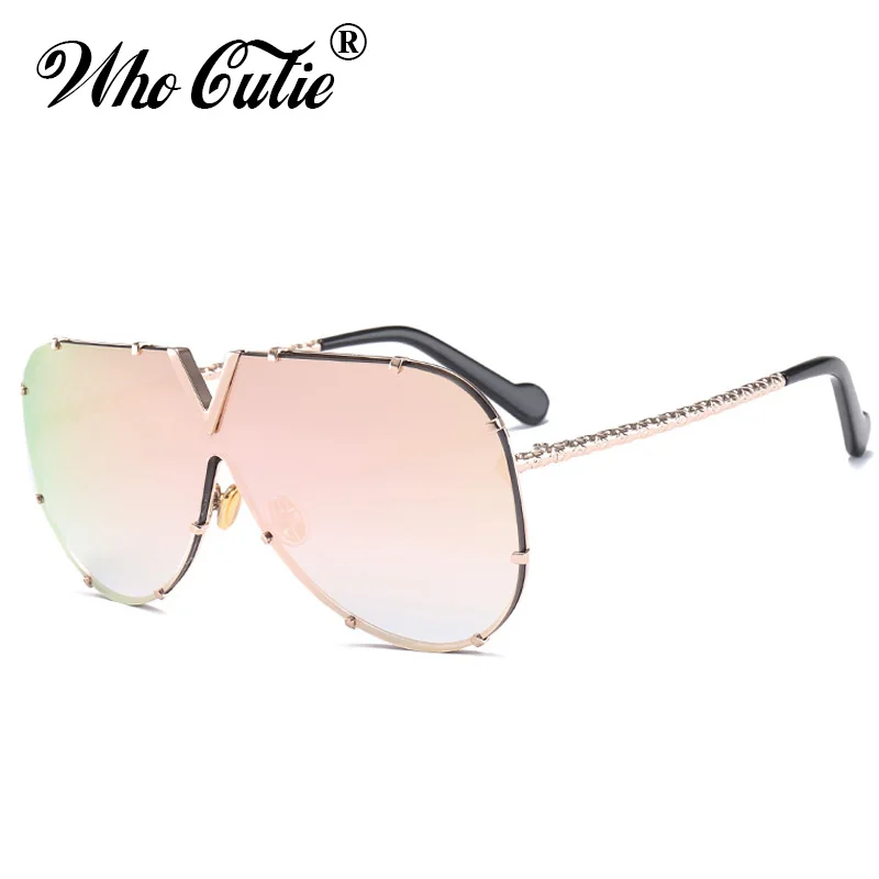WHO CUTIE, фирменный дизайн, авиационные солнцезащитные очки без оправы, мужские, высокое качество, негабаритные, пилотные солнцезащитные очки для женщин и мужчин, зеркальные, розовые оттенки, OM526