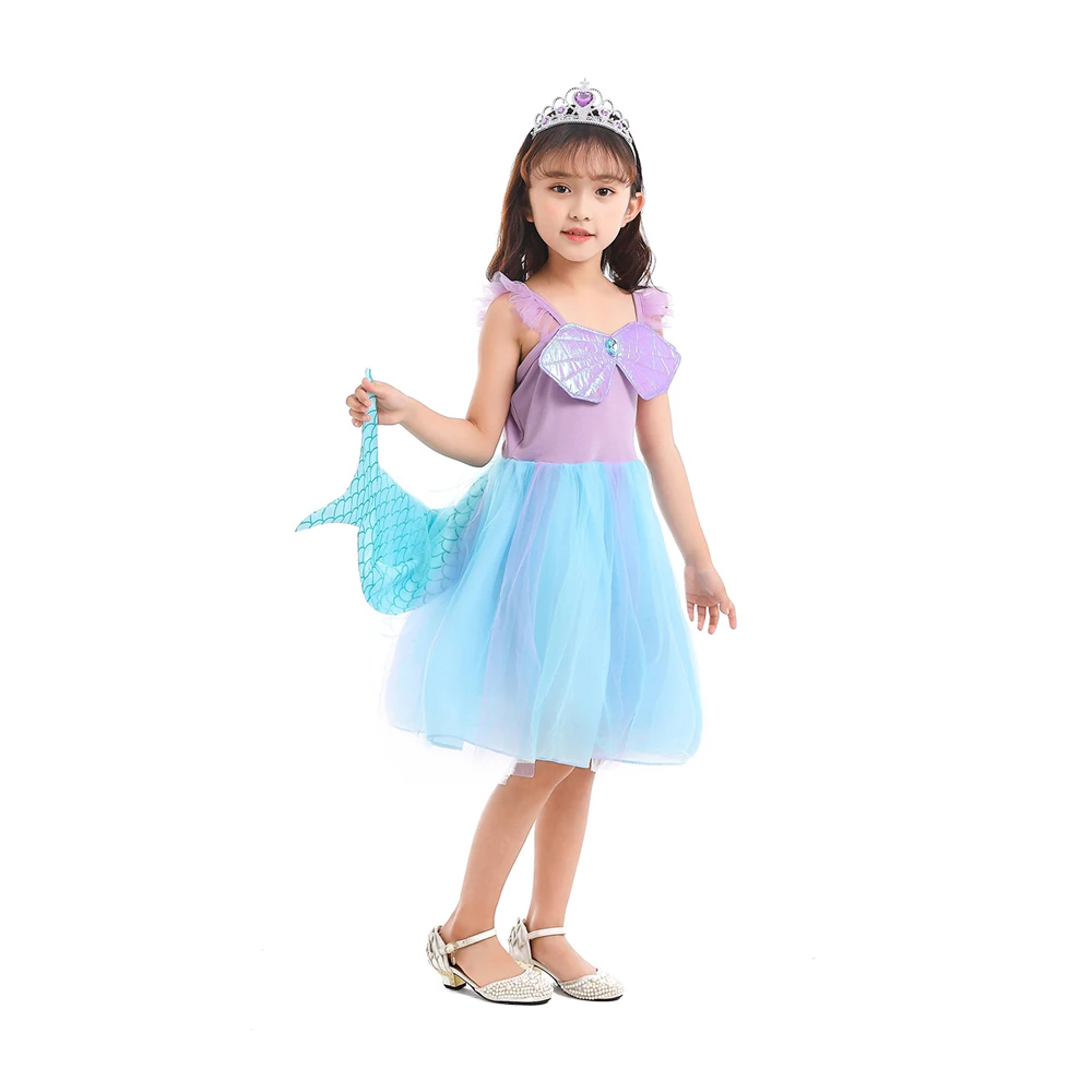 Рождественское платье Ариэль для маленьких девочек, летний нарядный костюм с хвостом русалки для маленьких принцесс, милая Одежда для девочек на день рождения
