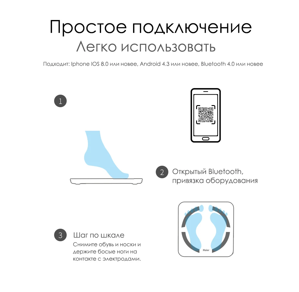 Ваги класні, вперше вибирала доставку з України, отримала через три дні. Все чітко, відсканувала на інструкції, додаток сам знайшовся, скачала, пише в інструкції важитись босим. Щоб дані передавались з ваг на моб потрібно включити блютуз.
