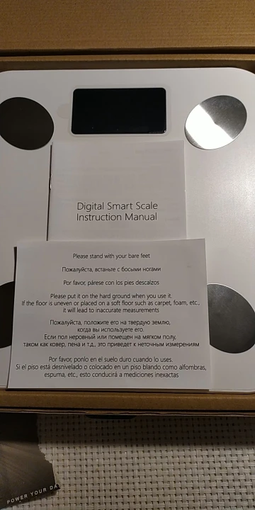 Весы приобрела и оплатила 21 января в 23:00 за 1700 рублей. Какого было мое разочарование, когда через несколько дней они уже стоили 1200, ну да ладно)) может будет уроком кому-то, что если вам не срочно, стоит подождать хорошую цену) с продавцом не общались, отправил товар очень быстро, 25 января я уже забрала весы (Краснодар). При том, что 23-24 были выходные. Наверное стоит учитывать это) Черный пакет, внутри коробка, в ней весы в прозрачной упаковке и инструкции. Честно, мне показались они немного маленькими и прям супер легкими, надеюсь при этом не хлипкими... Хотя я сама не большая дама если что) с айфоном синхронизировались быстро по приложению, которое нашла и скачала в ап стор не больше, чем за минуту) Инструкция в книжке сначала на англ, потом на русском языке. Ну и как и написано, СТАВЬТЕ ВЕСЫ НА РОВНУЮ ПОВЕРХНОСТЬ И ВСТАВАЙТЕ БОСИКОМ и будет всё ок) вес вроде точный, сравнить не с чем)