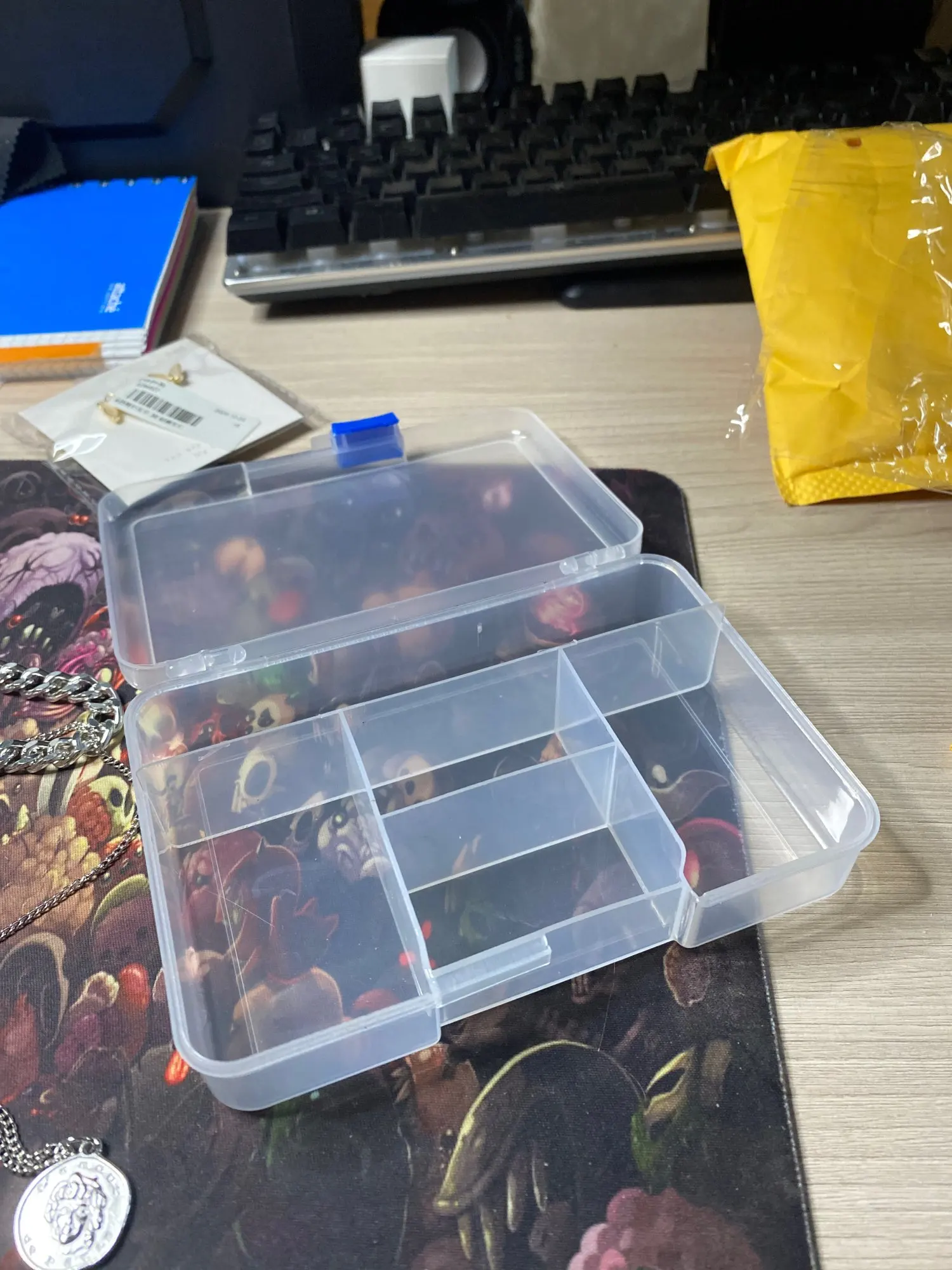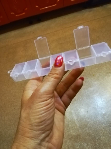 очень ценная коробочка, подходит для мелких вещей, использую для бисера и для шурупов 0,4 и 0,5