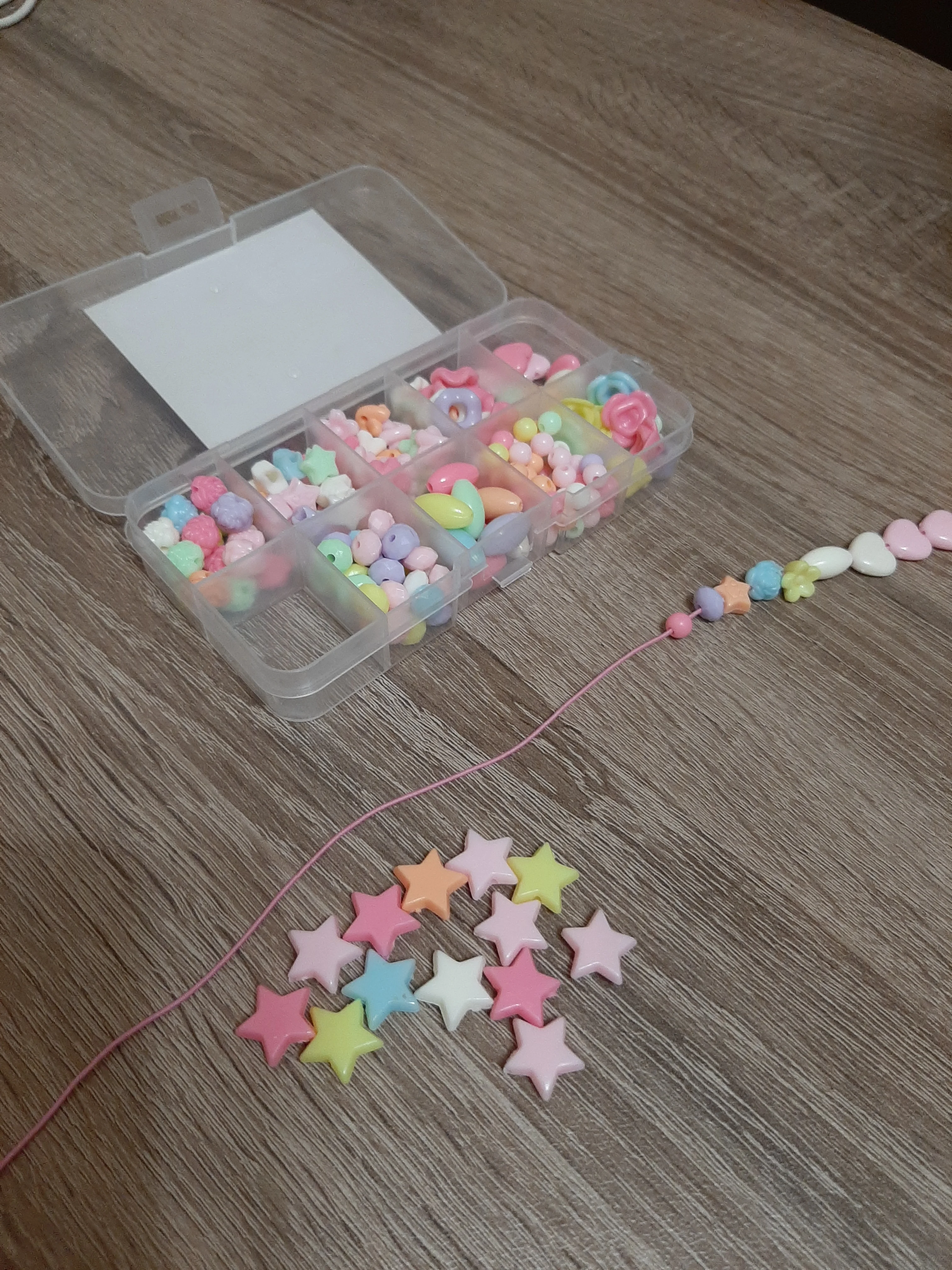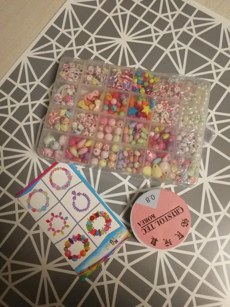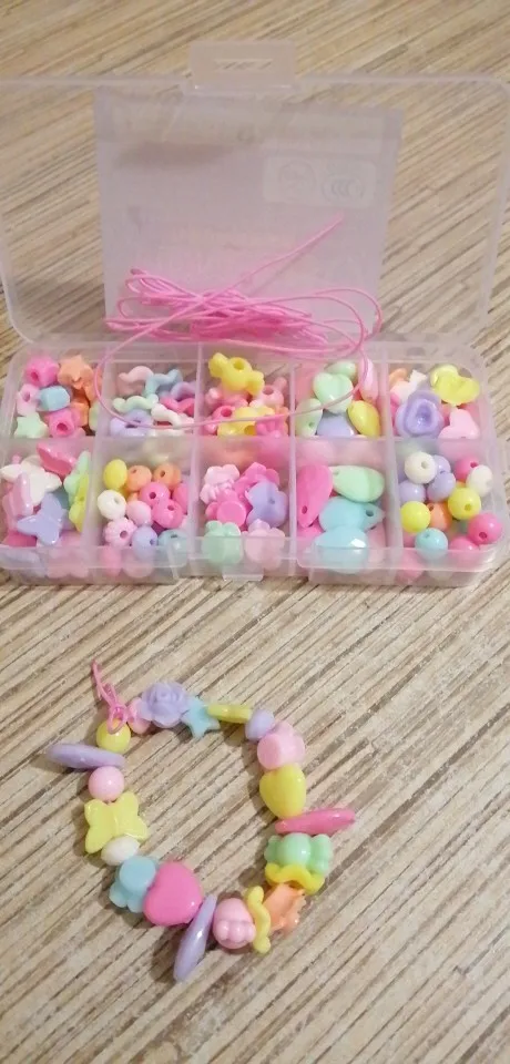 Хорошее качество, милые цвета, крупные отверстия, в них легко продевается резиночка, (прилагается к набору). Очень удобное пособие для детского творчества и развития. Ребёнку 4х лет нравится. Закажу ещё разных бусин. Шло ровно один месяц в общем пакете с другими моими заказами.