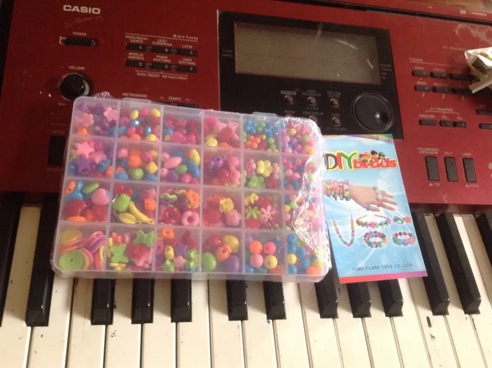 В комплекте не оказалось верёвок-шнурков, на которые нанизывать бусины. Только коробка бус, а на картинке все должно было быть(