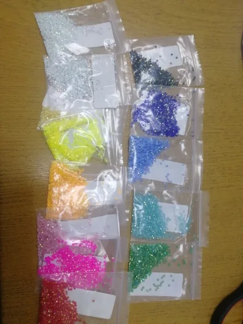 Заказ пришёл быстро, стразики маленькие, что очень удобно для дизайнов. Но я заказывала 15 пакетов, продавец прислал 13 пакетов. Наверно, ошибся. Но, стразы качественные, продавца рекомендую. Фиолетовый цвет страз и голубой отсутствуют.