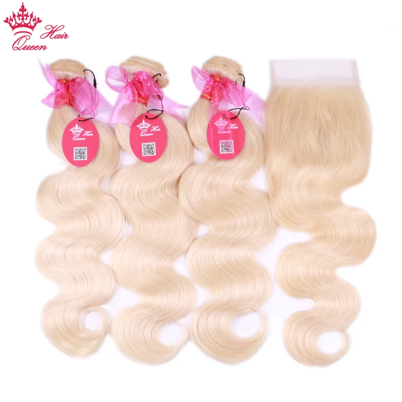 #613 светлые волнистые бразильские человеческие волосы, волнистые пучки с застежкой, 3 шт. неповрежденных волос и 1 шт. волнистые королевские волосы 4 шт.лот