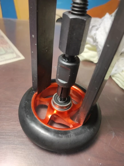 отвратительное качество. выжал два прома из не проблемного колеса самоката и уже на металле буртик, геометрия цанги нарушена. с тяжёлым случаем не справится точно да и , вероятно, с таким качеством лопнет на следующей выпресовке. есть аналогичный инструмент licota, выглядит так же, стоит в пять раз дороже, работает в 88 раз лучше. этот не советую, трата денег