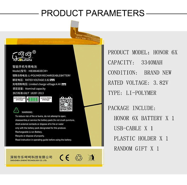 Новый LEHEHE HB386483ECW Аккумулятор для Huawei honor 6X G9 plus Maimang 5 MLA-AL00 MLA-AL10 3340 мАч аккумулятор с инструментом в подарок