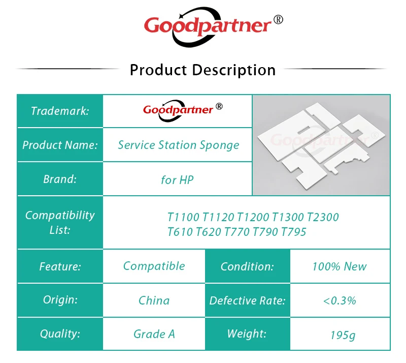 Губчатая накладка Q5669-60667 для сервисной станции HP T1100 T1120 T1200 T1300 Z2100 T2300 Z3100 Z3200 Z5200 T610 T620 T770 T790 T795, 1 шт
