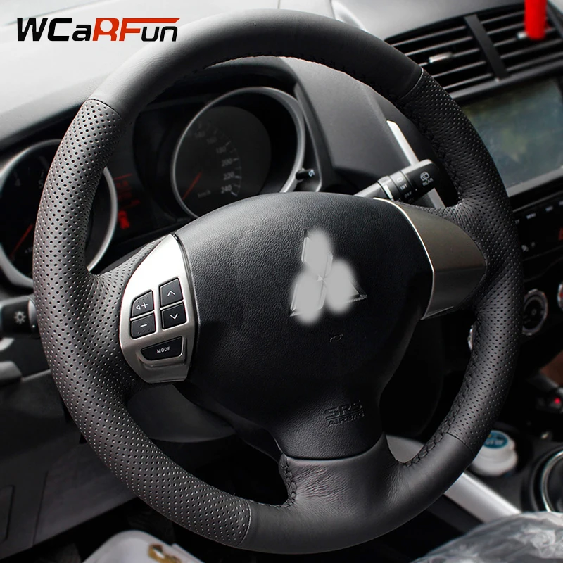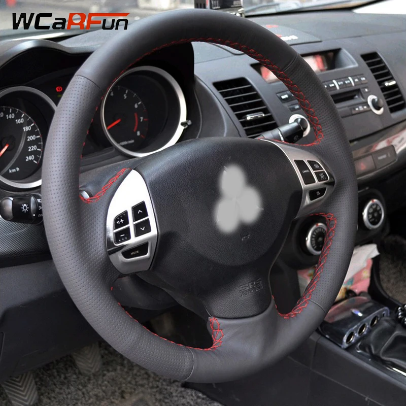 Чехол для руля WCaRFun, черная искусственная кожа, для Mitsubishi Lancer EX10, Lancer X, Outlander, ASX, Colt, Pajero, Sport