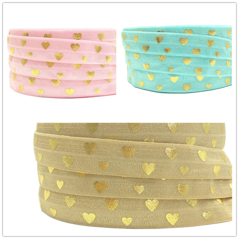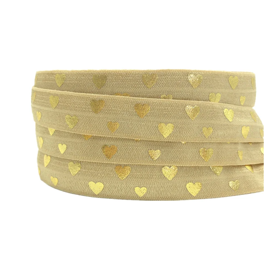 Новое поступление, Золотая фольга, принт с сердечками, складывается на резинке, 10 ярдов/партия, оптовая продажа, 5/8 ", заколка для волос, аксессуары для волос