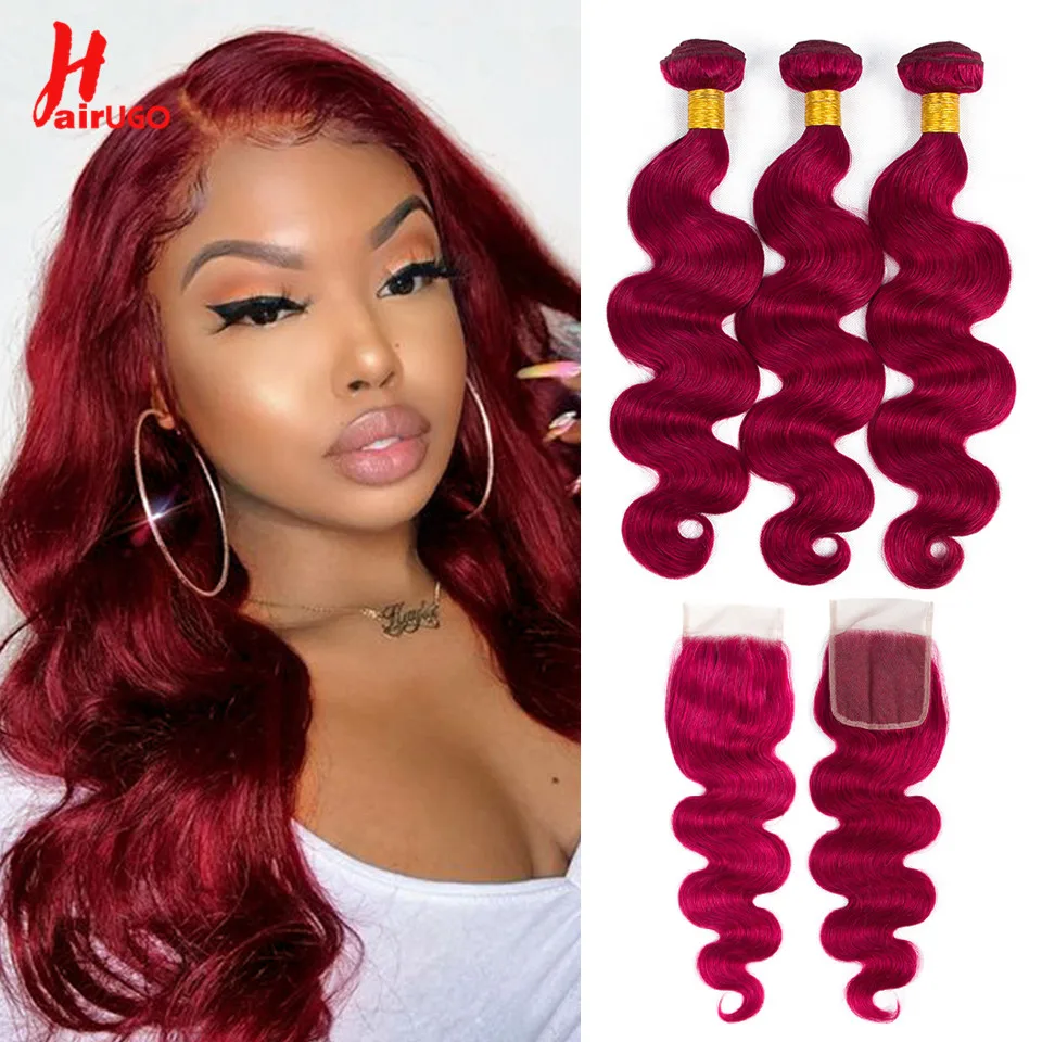 HairUGo, кудрявые вьющиеся пряди волос с закрытием, малазийские пучки волос с закрытием, натуральные черные 3 пряди с закрытием, не Реми
