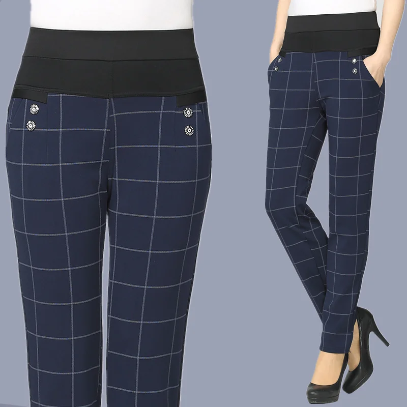 Брюки-карандаш женские зимние в клетку, с высокой талией