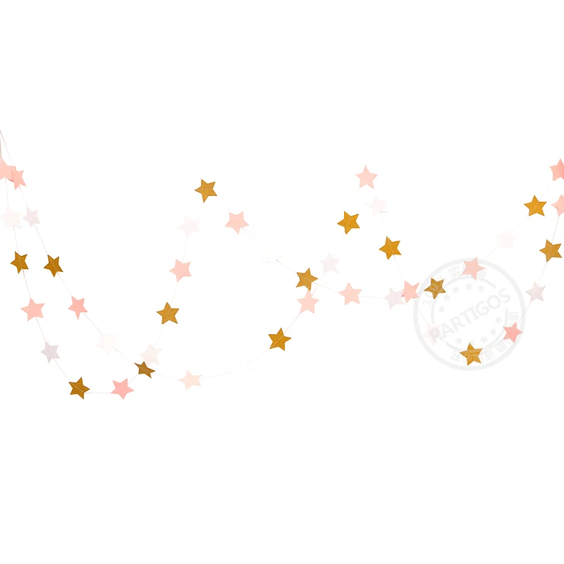Декоративная гирлянда из блестящая золотая звезда бумаги, 22 шт.лот, 2 м, розовый, черный, белый