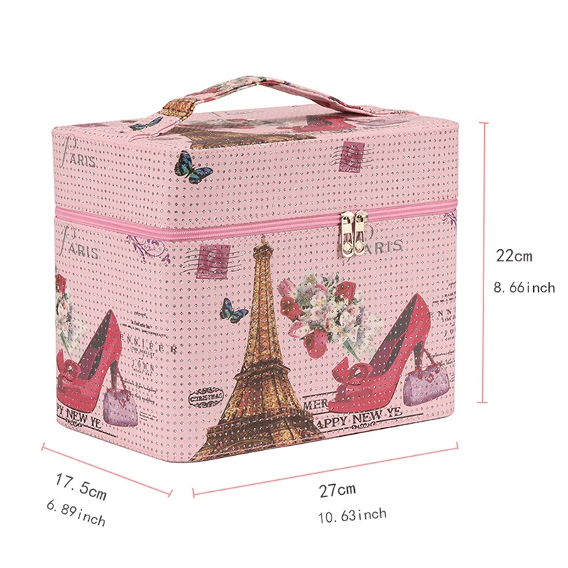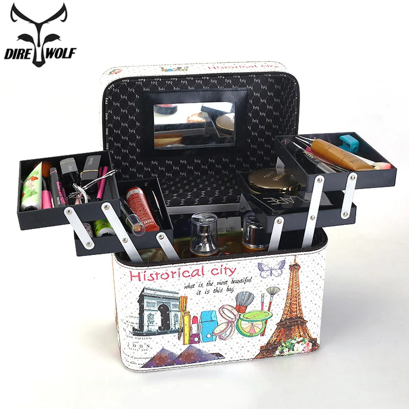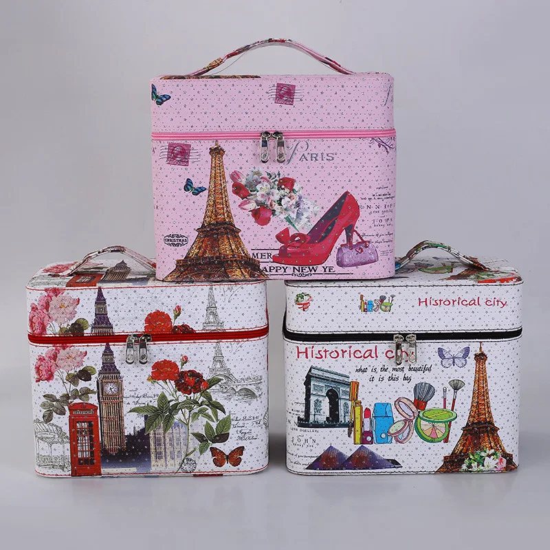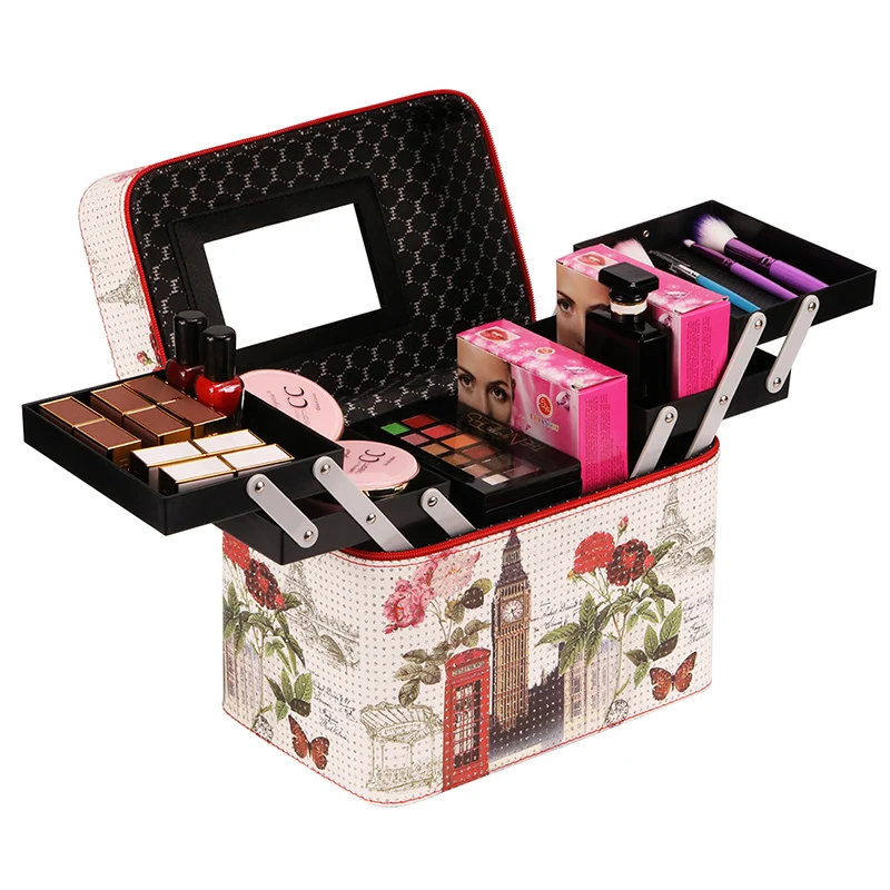 Женский вместительный Профессиональный органайзер для косметики, модная косметичка, многослойная коробка для хранения, портативный цветочный чемодан