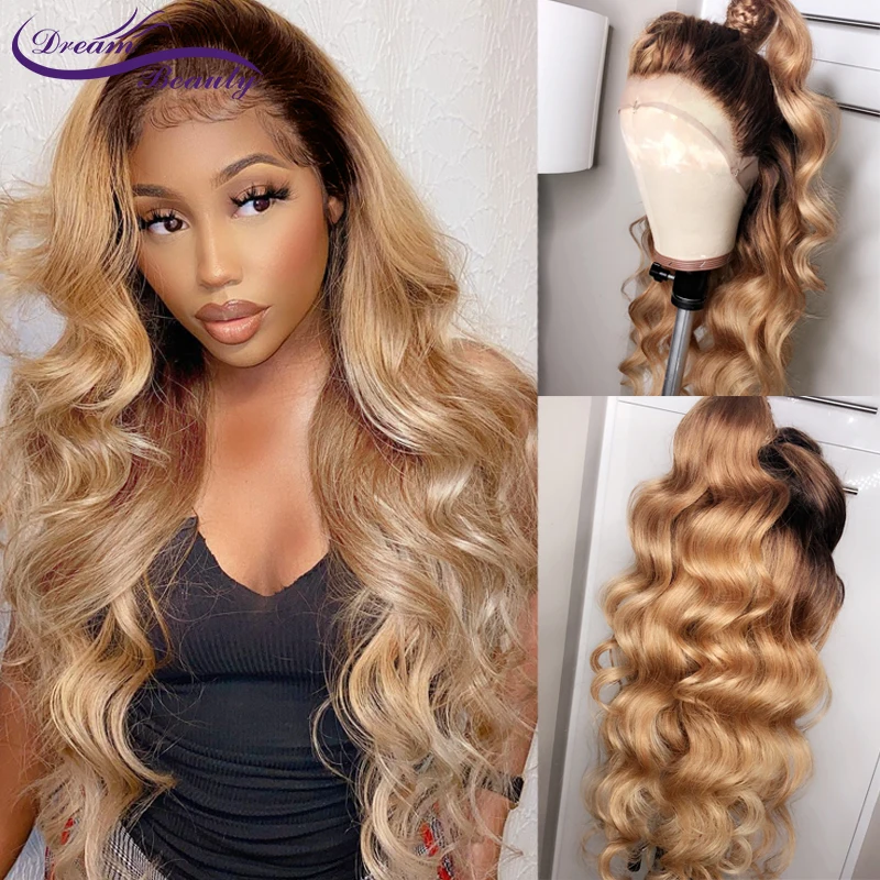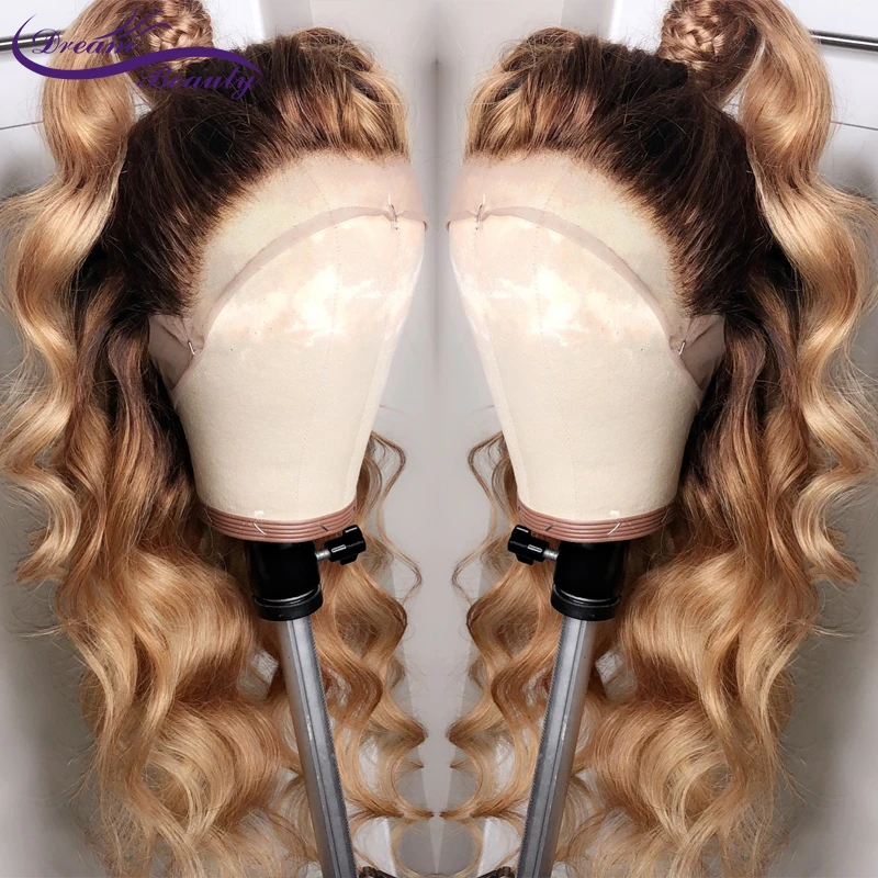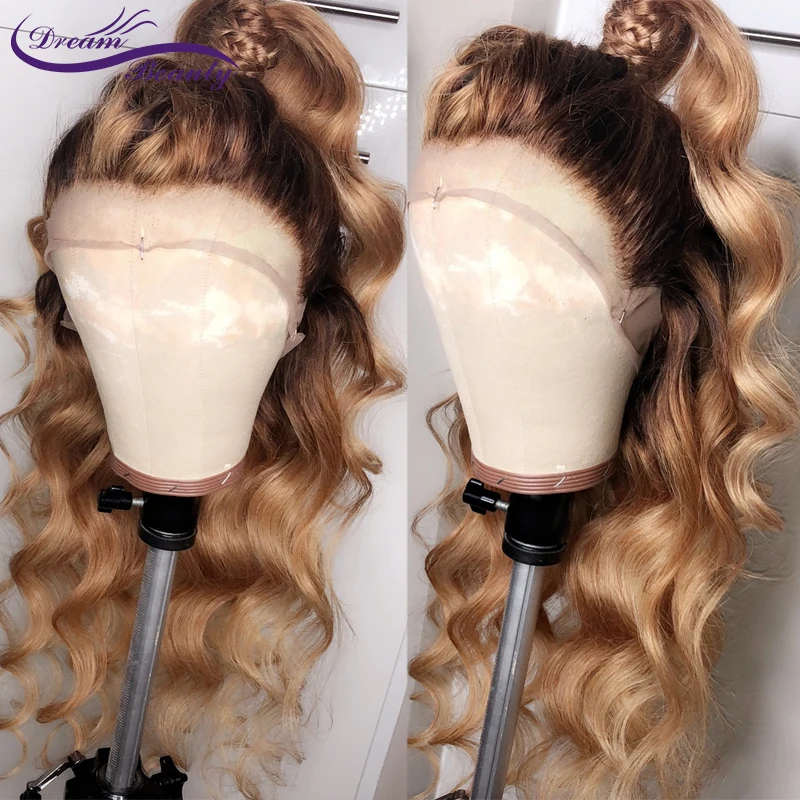 Парики из натуральных волос с эффектом деграде для женщин, медовый блонд, парики с сеткой с эффектом деграде, объемная волна 180%, перуанский #427, цветные парики с сеткой спереди 13 х4