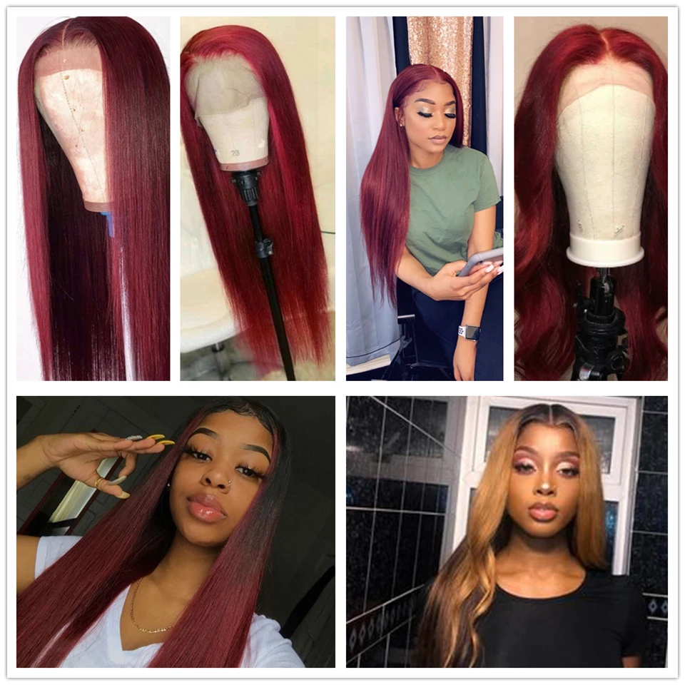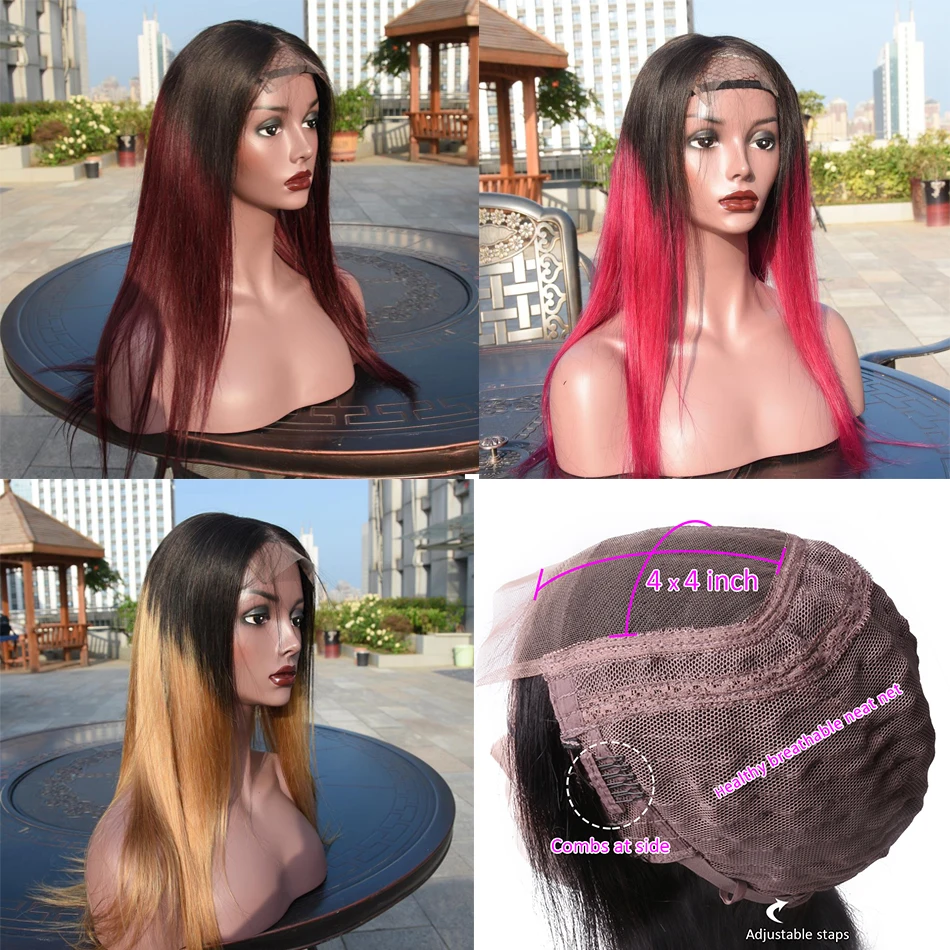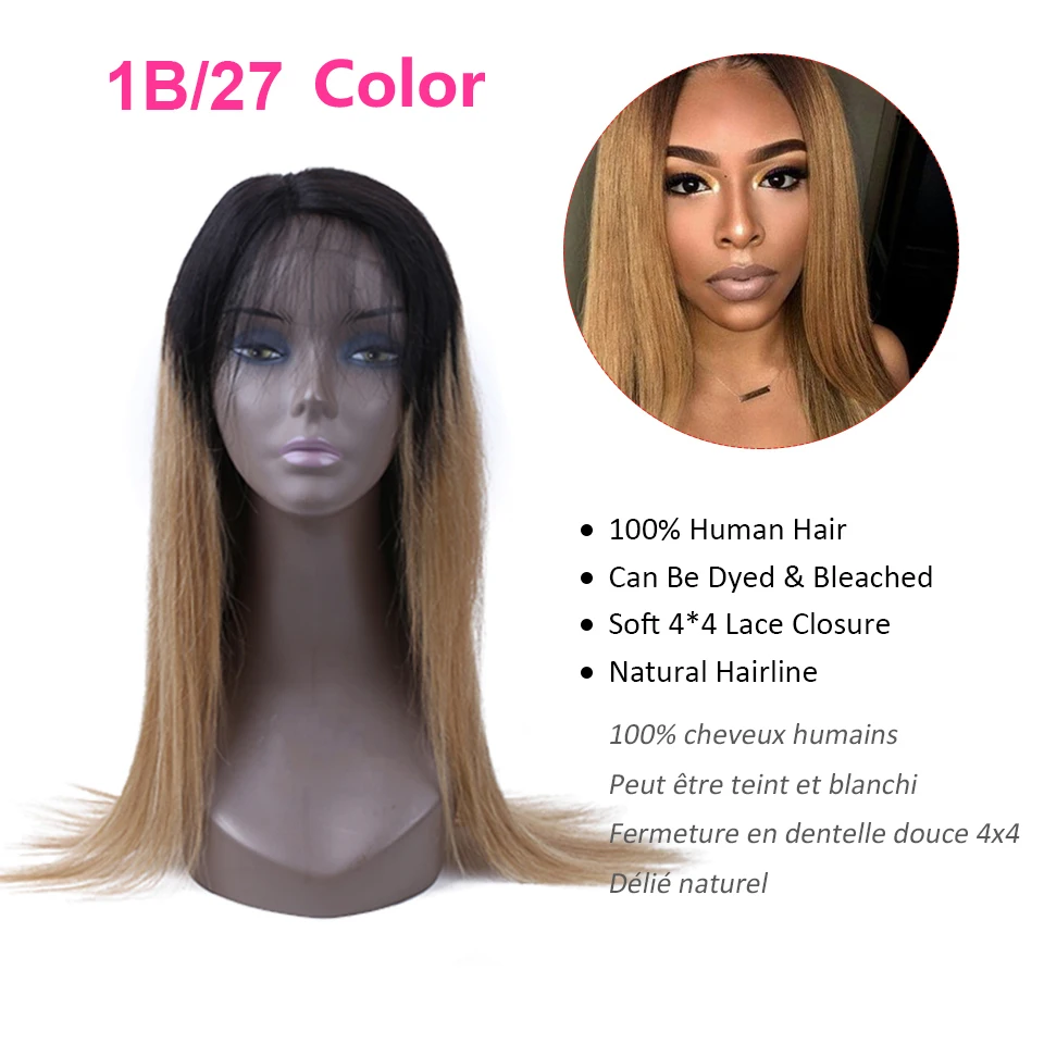 Парики HairUGo Malaysia 1B27 Ombre, прямые человеческие волосы, бордовый 4*4, парик на шнурке, блонд, Remy, предварительно выщипанные 150%