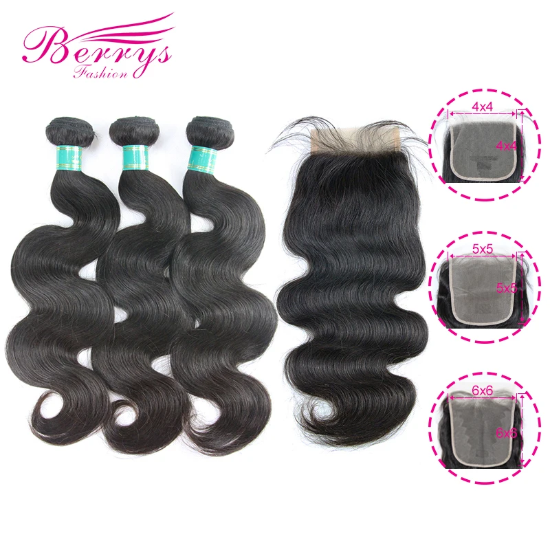 Berrys модные волнистые пучки с 4x4 & 5x5 & 6x6 закрытие бразильские виргинские волосы плетение 100% человеческие волосы для наращивания 10-28 дюймов