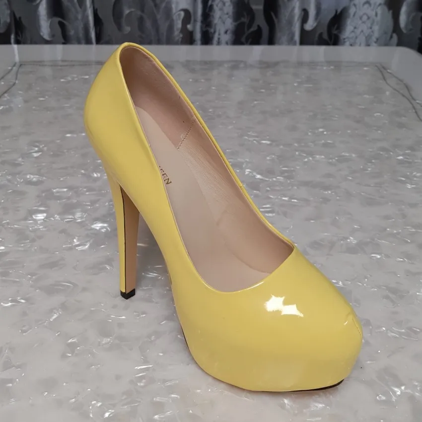 Элегантные женские туфли-лодочки из лакированной кожи, новые весенние сексуальные туфли на тонком высоком каблуке и платформе, свадебные классические туфли синего, красного, черного, телесного цвета