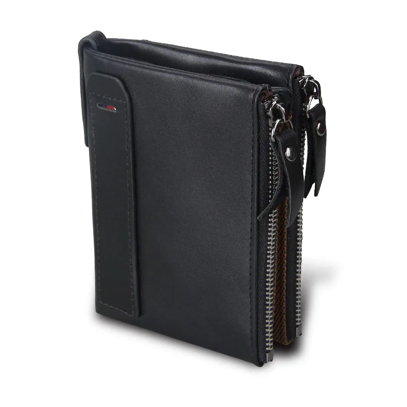 Короткий кошелек из натуральной кожи с двойной молнией и RFID-защитой