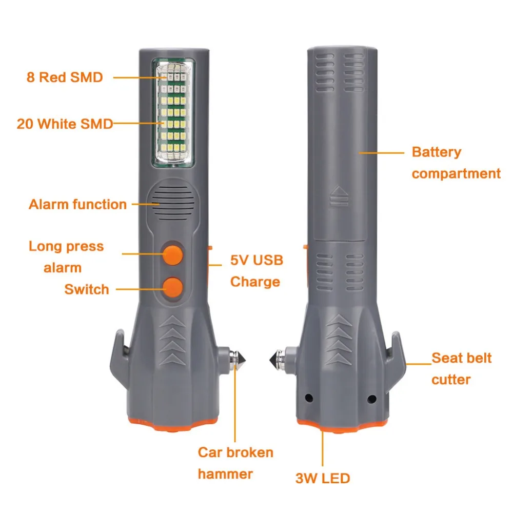 Во время чрезвычайных ситуаций в автомобиле, этот аварийный инструмент для побега автомобиля поможет вам спастись самостоятельно. Режущий ремень безопасности, чтобы отрезать заглушенный ремень безопасности, стеклянный оконный выключатель, чтобы сломать застрявшее окно, красный фонарик, чтобы найти путь или предупредить других.