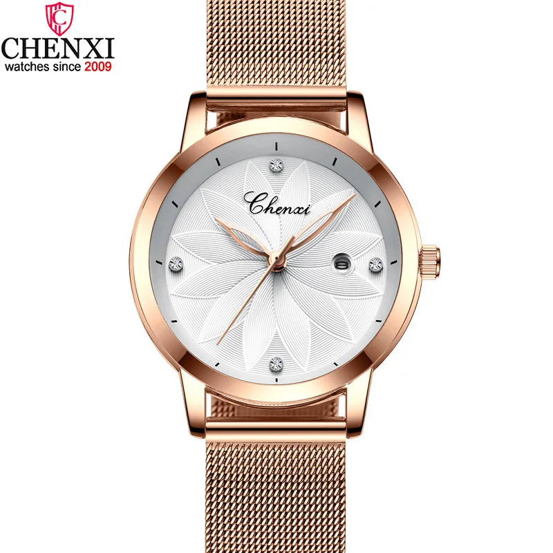 Модные минималистские женские часы CHENXI, элегантные женские наручные часы цвета розового золота, белого цвета, повседневные часы для вечеринки, Деловые женские часы