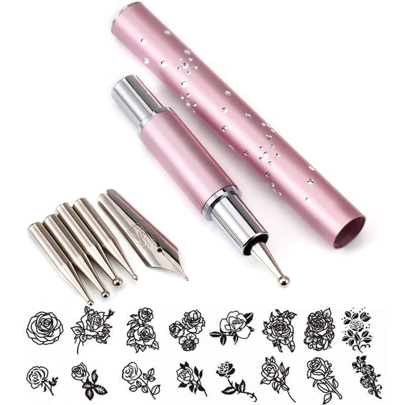 Металлическая насадка для дизайна ногтей, точечная ручка, точечная Цветочная линия Стразы, рисование наконечников, рисование, УФ-Гель-лак, 3D DIY, съемный маникюр