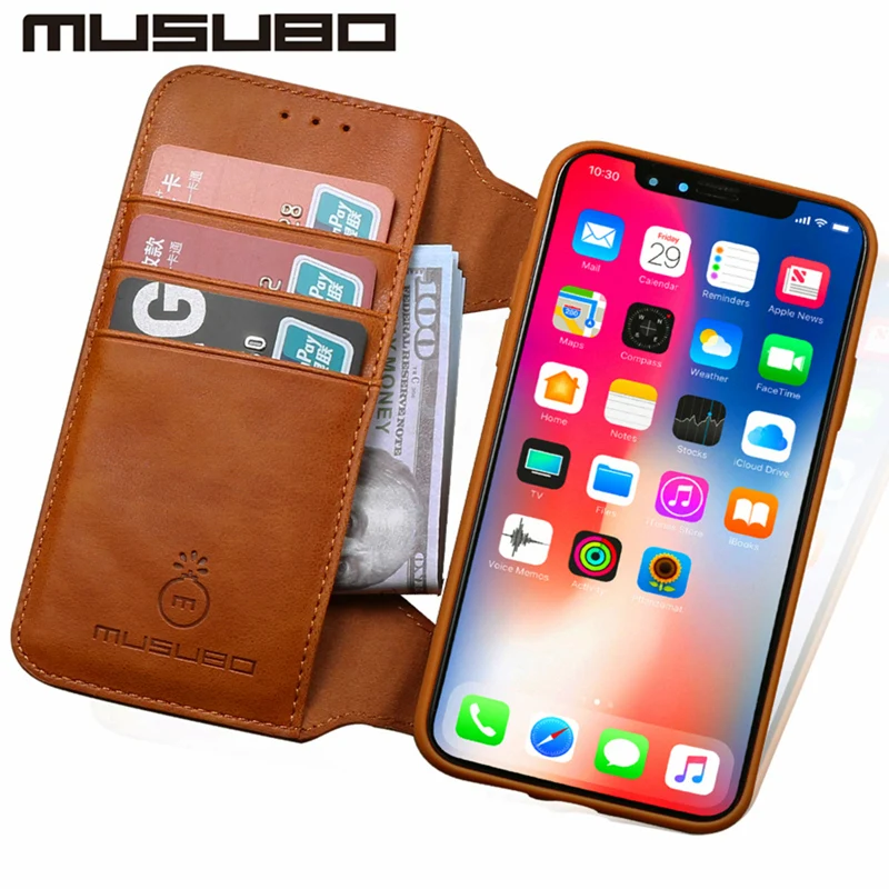Роскошный кожаный чехол Musubo для iphone X, флип-кейс, силиконовый чехол для iphone 8 Plus 7 6 6s Plus, ТПУ, кошелек, держатель для карт, съемный