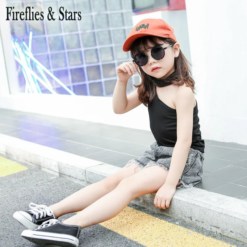 Летняя футболка для девочек, детская футболка, кроп-топ, Детская уличная одежда, модная одежда для девочек с открытыми плечами и лямкой на шее в полоску от 2 до 9 лет