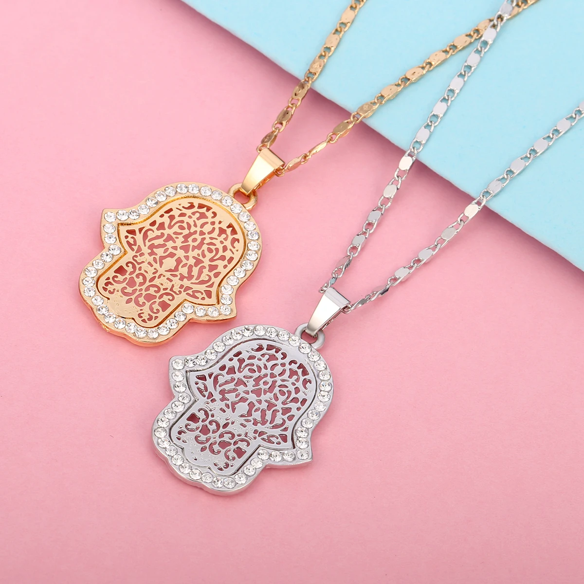 Ожерелье с хрустальными ладонями Хамса для женщин, позолоченное, серебряное, полое ожерелье-чокер Фатимы, модные ювелирные изделия, подарок на Новый год 2022