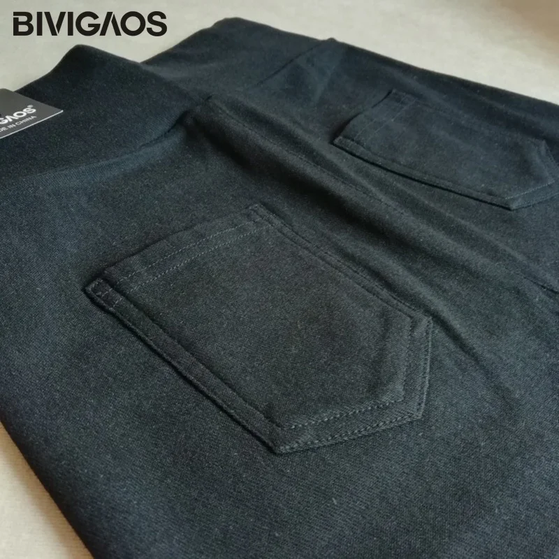 BIVIGAOS Новые Мода и досуг однотонные брюки-карандаш с карманами и высокой посадкой женские тканые Леггинсы больших размеров эластичные тонкие обтягивающие штаны для женщин Большой код Брюки-карандаши icon star icon star icon star icon star icon star