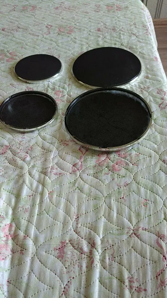 Чехлы идеально подходят для 4-дюймовых динамиков. Внешнее серебряное кольцо может быть отсоединено. Доставка была очень быстрой.