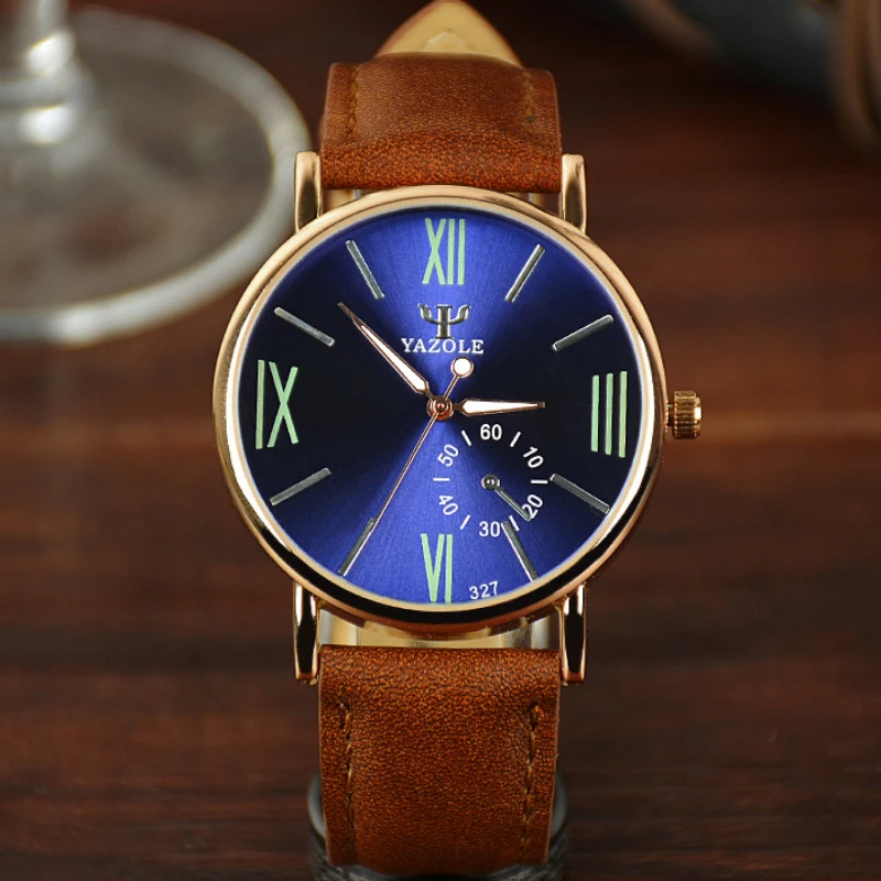 Часы YAZOLE мужские с римскими цифрами, модные брендовые светящиеся спортивные с кожаным ремешком