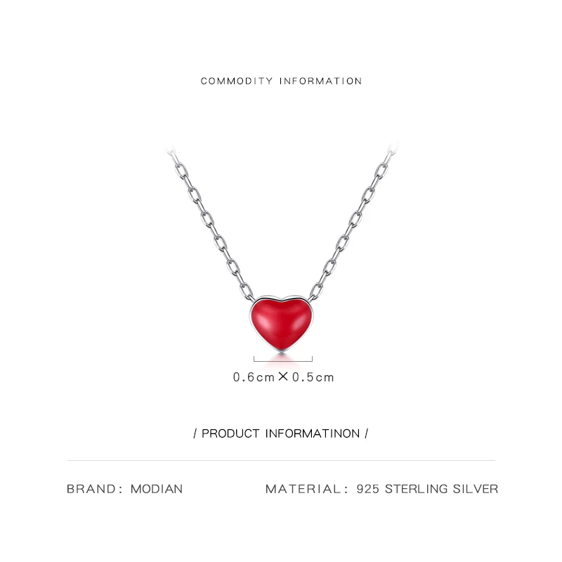 Цепочка женская из серебра 100% пробы, с красным сердцем