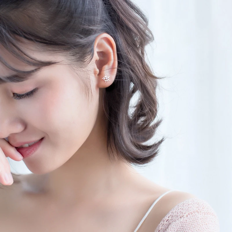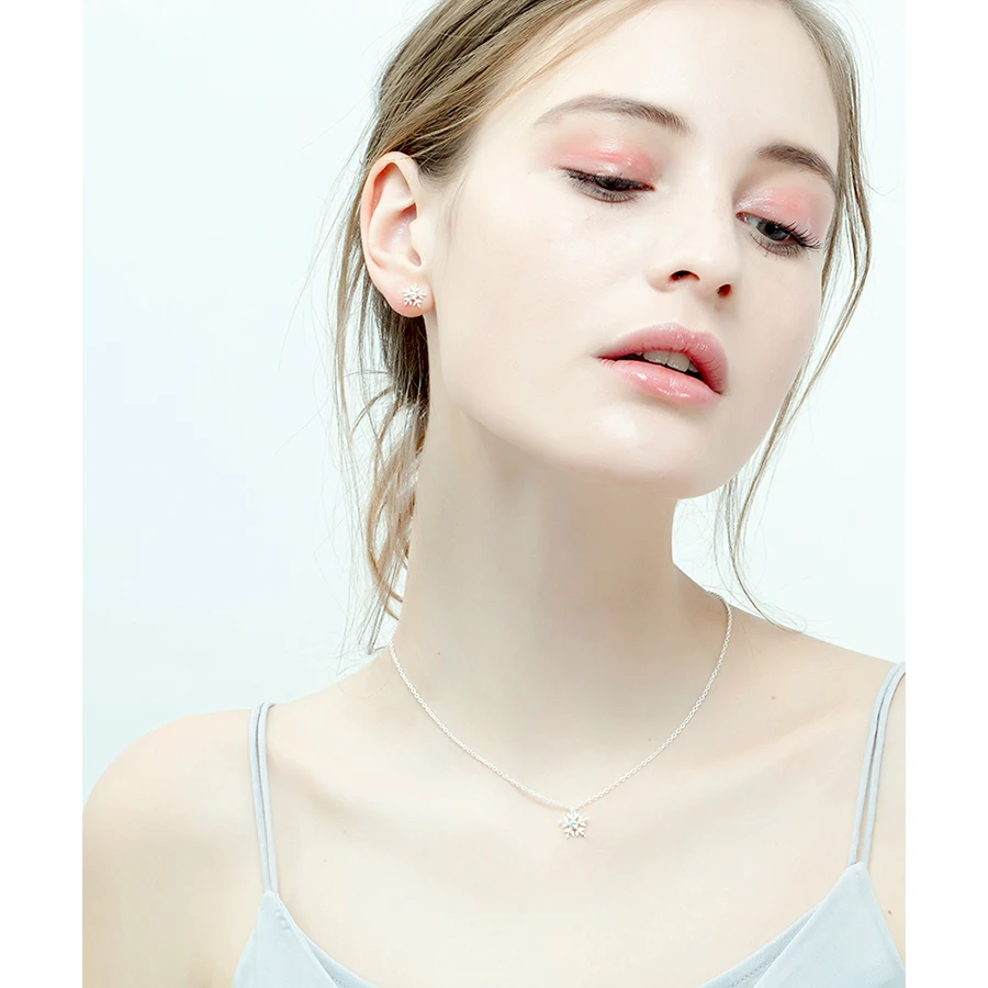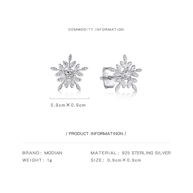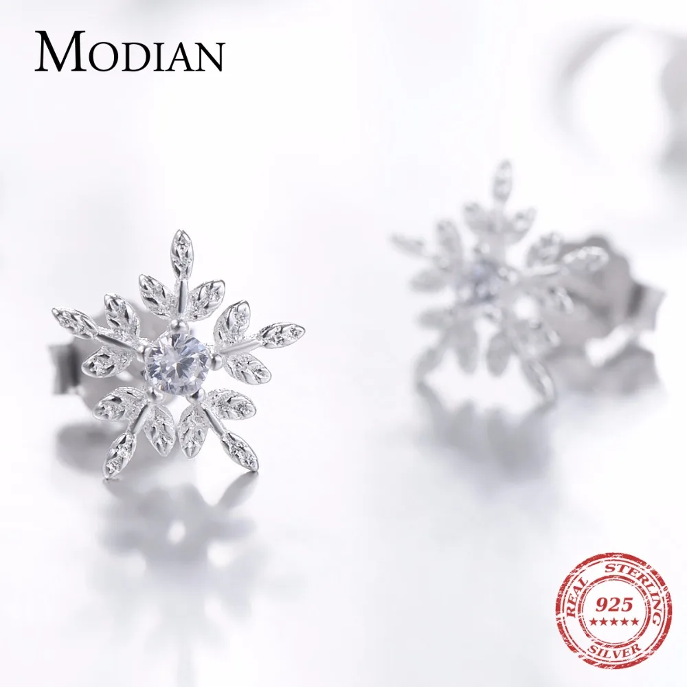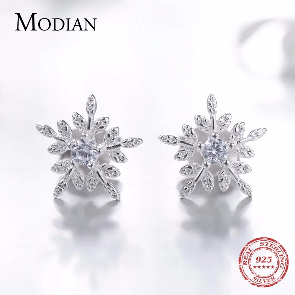 Женские серьги-гвоздики Modian из настоящего серебра 925 пробы с белыми снежинками и кубическим цирконием, ювелирное изделие из стерлингового серебра