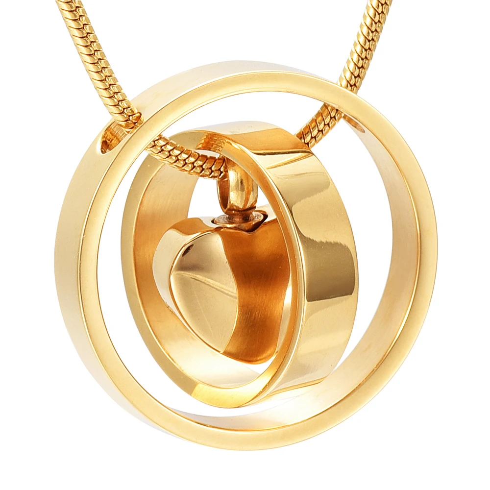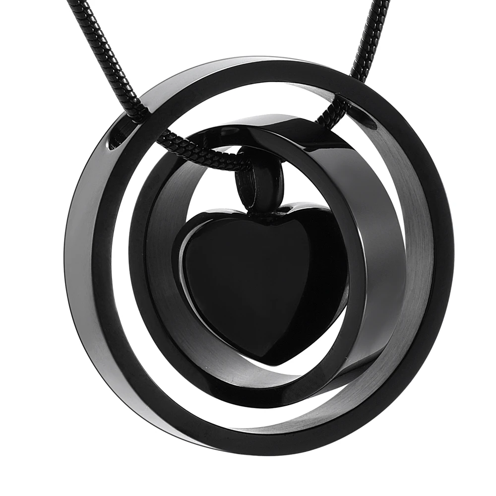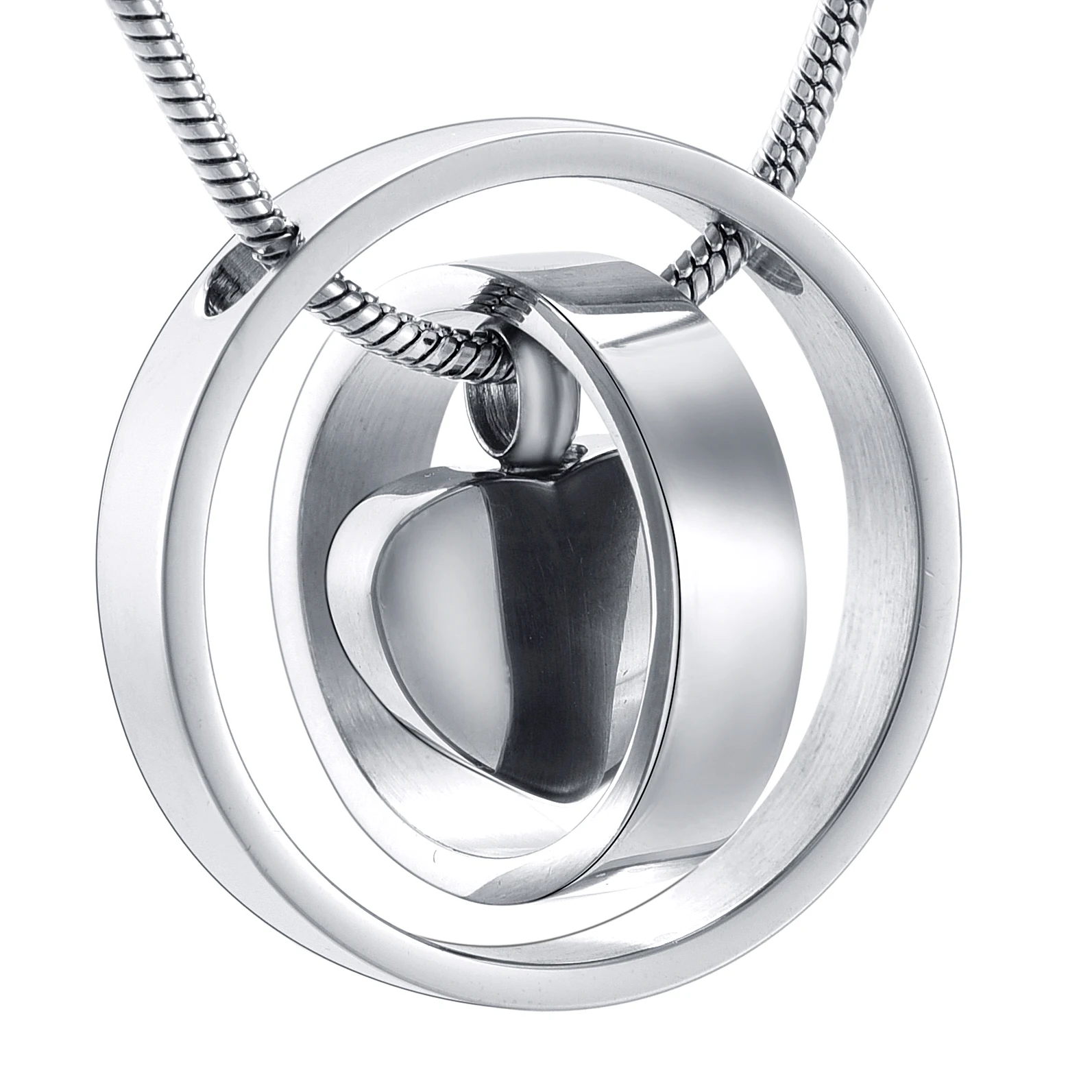 Ювелирные изделия K9954 для праха, двойной круг вокруг пустого сердца, кулон из нержавеющей стали, ожерелье памятный сувенир, мемориальная урна