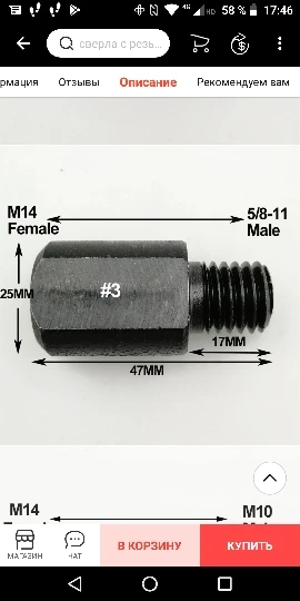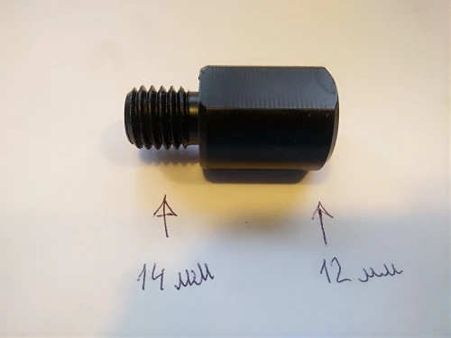Отверстие-резьба M14 пришло с краской, и я не мог его поцарапать, мне пришлось пройти мужчина резьбы, чтобы очистить его. Верхняя нить 16 мм не действительна для европейской шлифовальной машины, будьте осторожны! Основание мужчины уменьшено до 15 мм, а тонкие диски 16 мм танцуют, не касаясь 16-миллиметровой мужской нити.