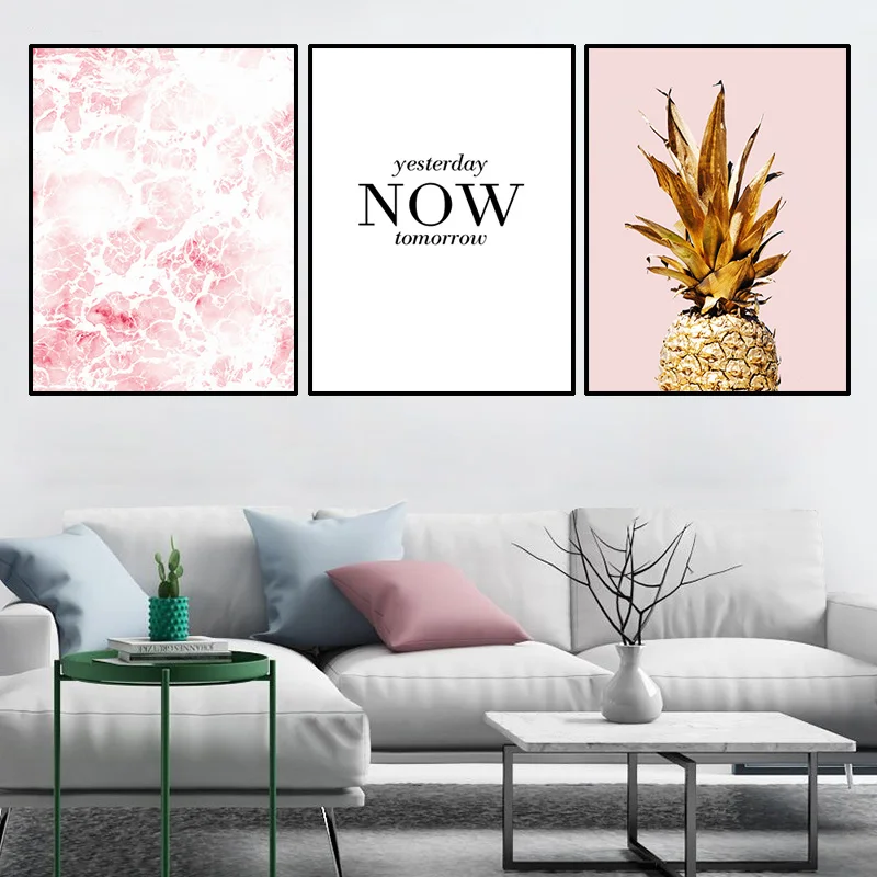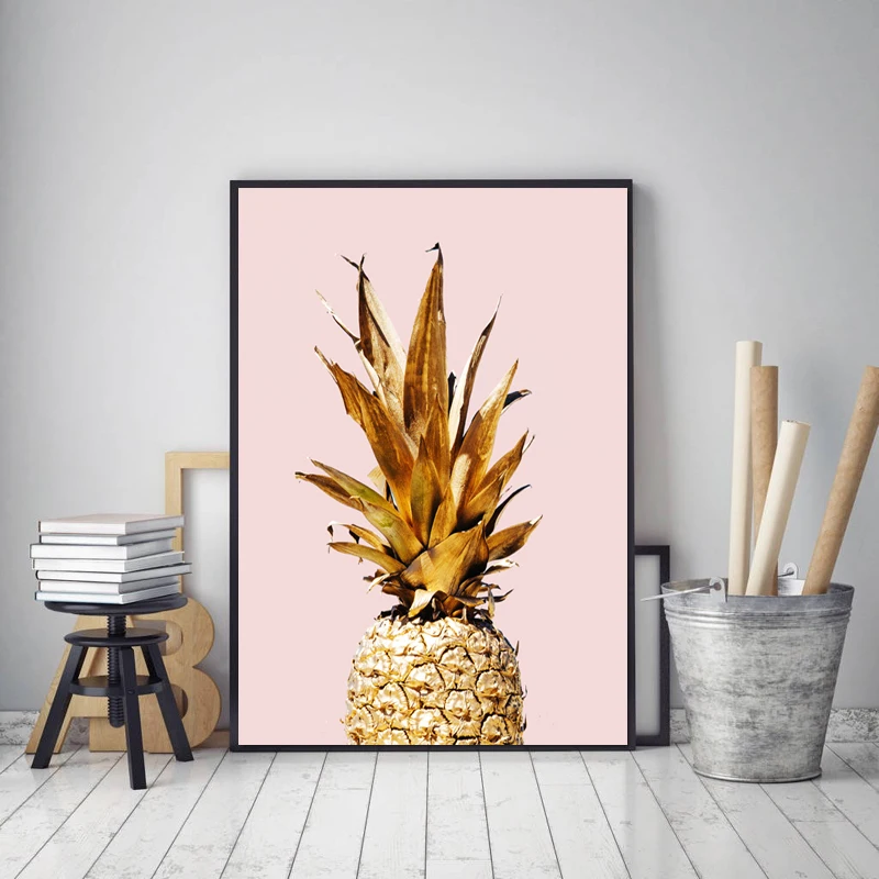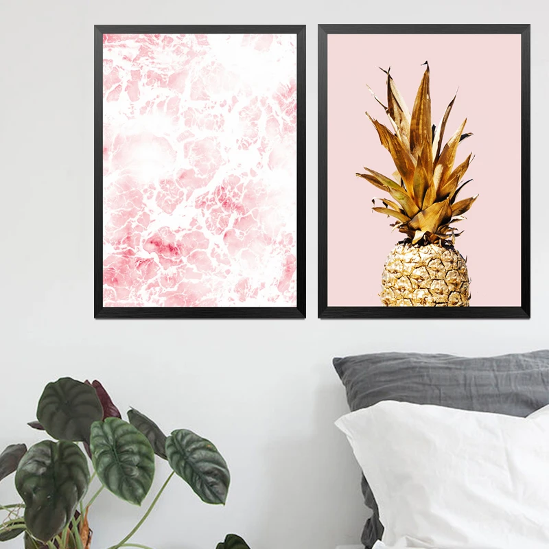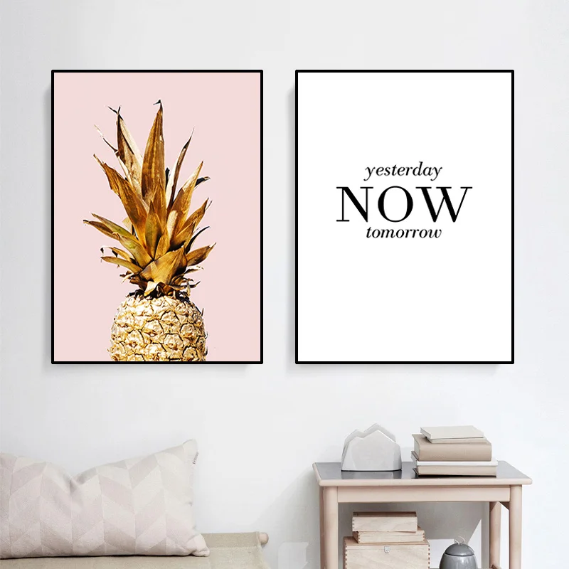 Розовые плакаты и принты морской волны, Золотая ананас, настенная Картина на холсте, картина с цитатами, настенные картины для гостиной HD2324