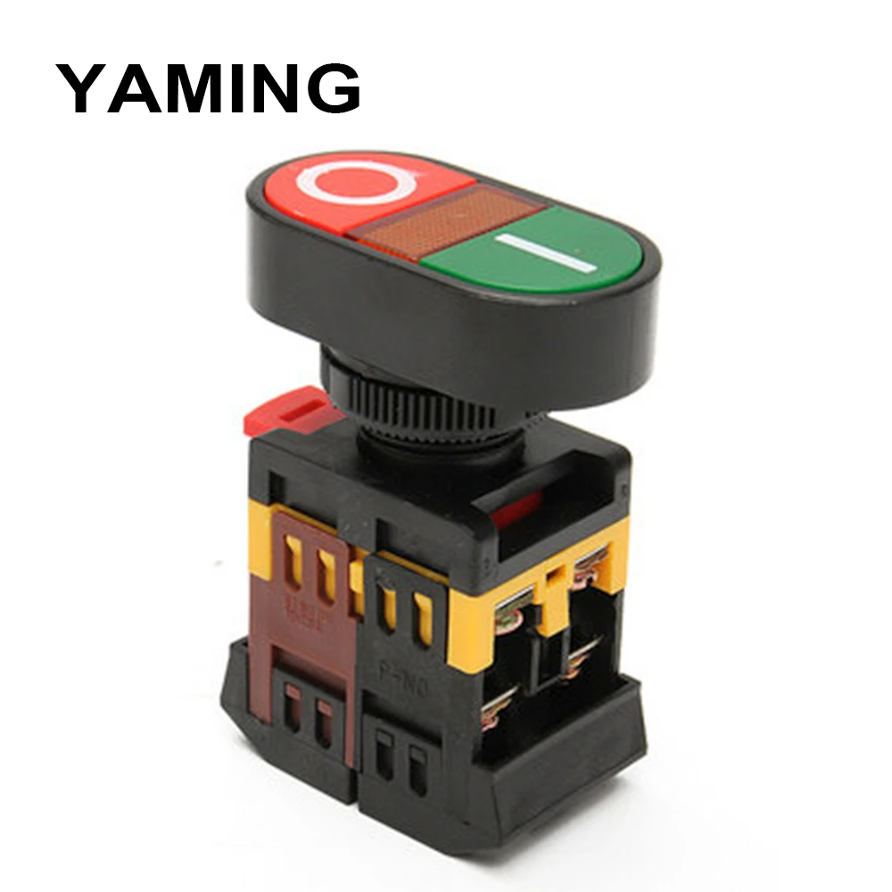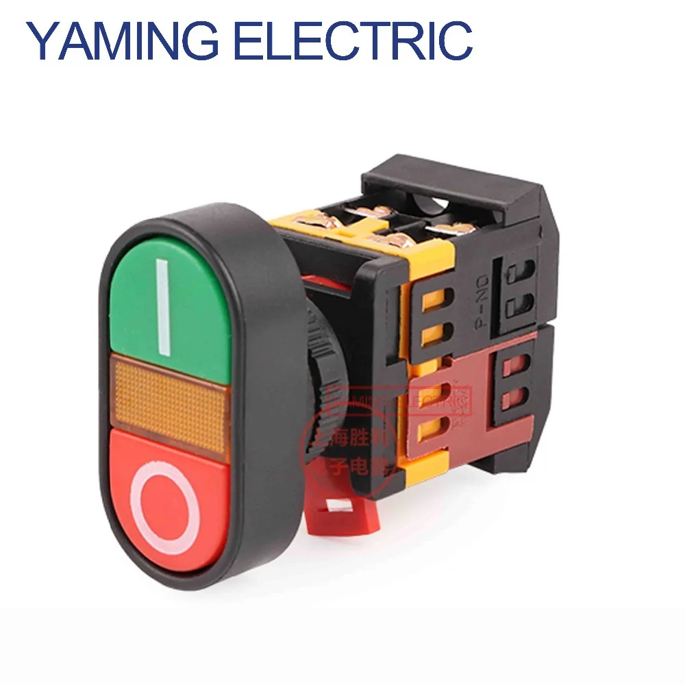 P188 22 мм25 мм 220 В переменного тока вклвыкл старт Стоп 1 NO NC 2 кнопки стробочный мгновенный двухголовый кнопочный переключатель со светодиодом