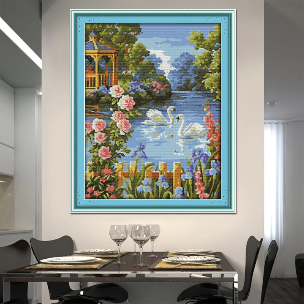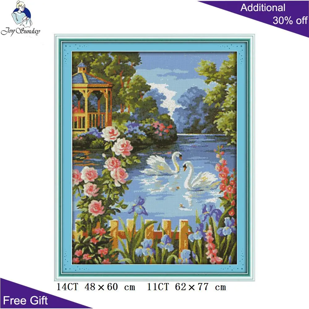 Joy Sunday Swan Lake Needlecraft F631(3) 14CT 11CT Набор для вышивки крестиком и домашнего украшения Лебединое озеро