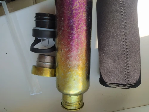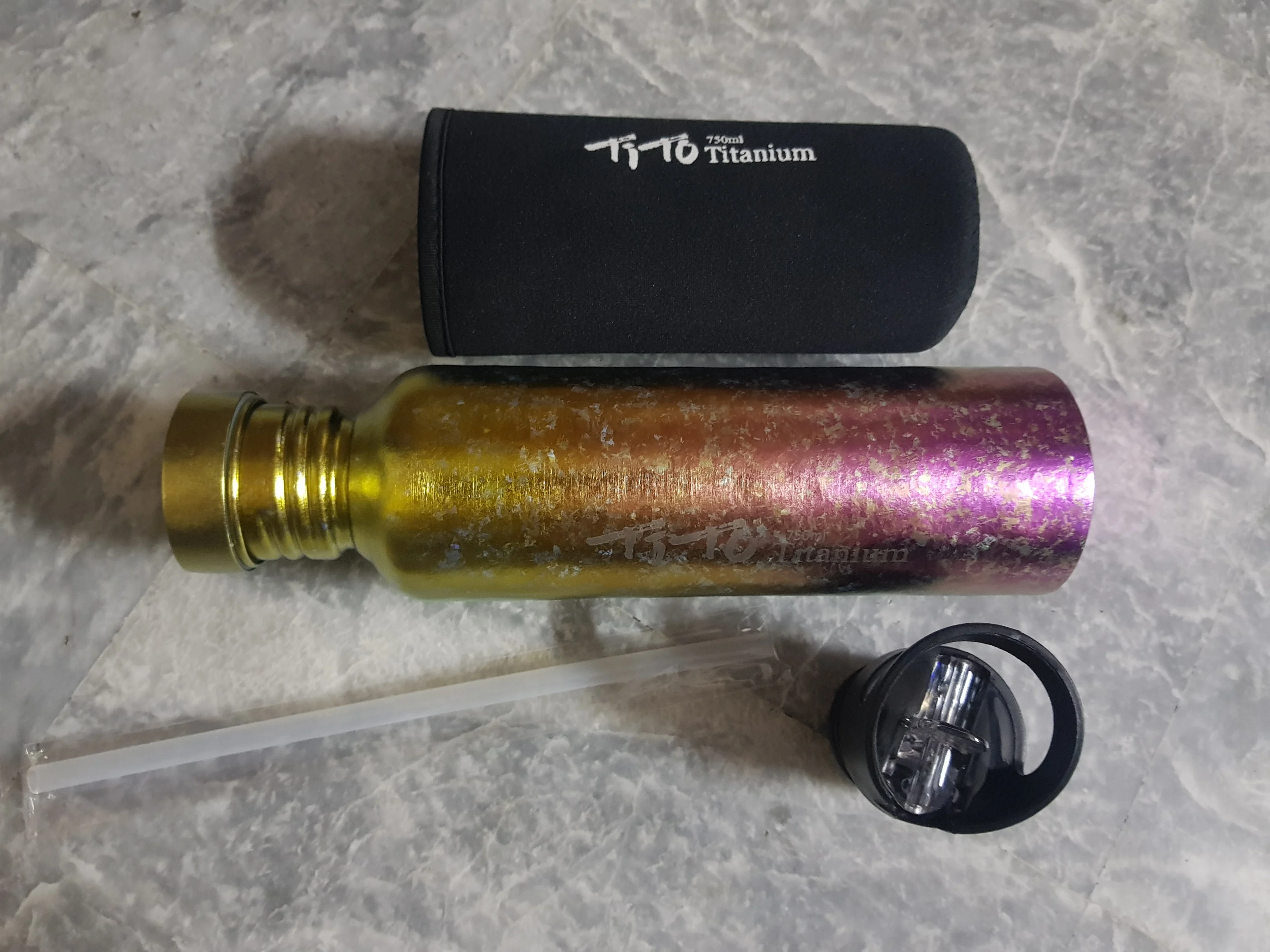 До Москвы за 10 дней. Бутылка из титана - по ощущениям, легче пластика) в комплекте идёт соска - ни она, ни штатная пробка не текут (везде присутствует силиконовое уплотнительное кольцо).