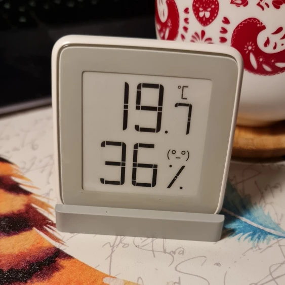 Милая Маленькая вещь! Аккумулятор уже установлен, вам просто нужно вытянуть прозрачную пленку изнутри (сзади), и она включается автоматически. Поставляется в крошечной оригинальной коробке, внутри есть подставка, магнит (с лентой на одной стороне) и двусторонняя лента. В основном, все, что вам нужно. Экран очень крутой и читаемый под любым углом и расстоянием. Реагирует на мой увлажнитель, дыхание и открытие окна мгновенно: D закажет больше, спасибо